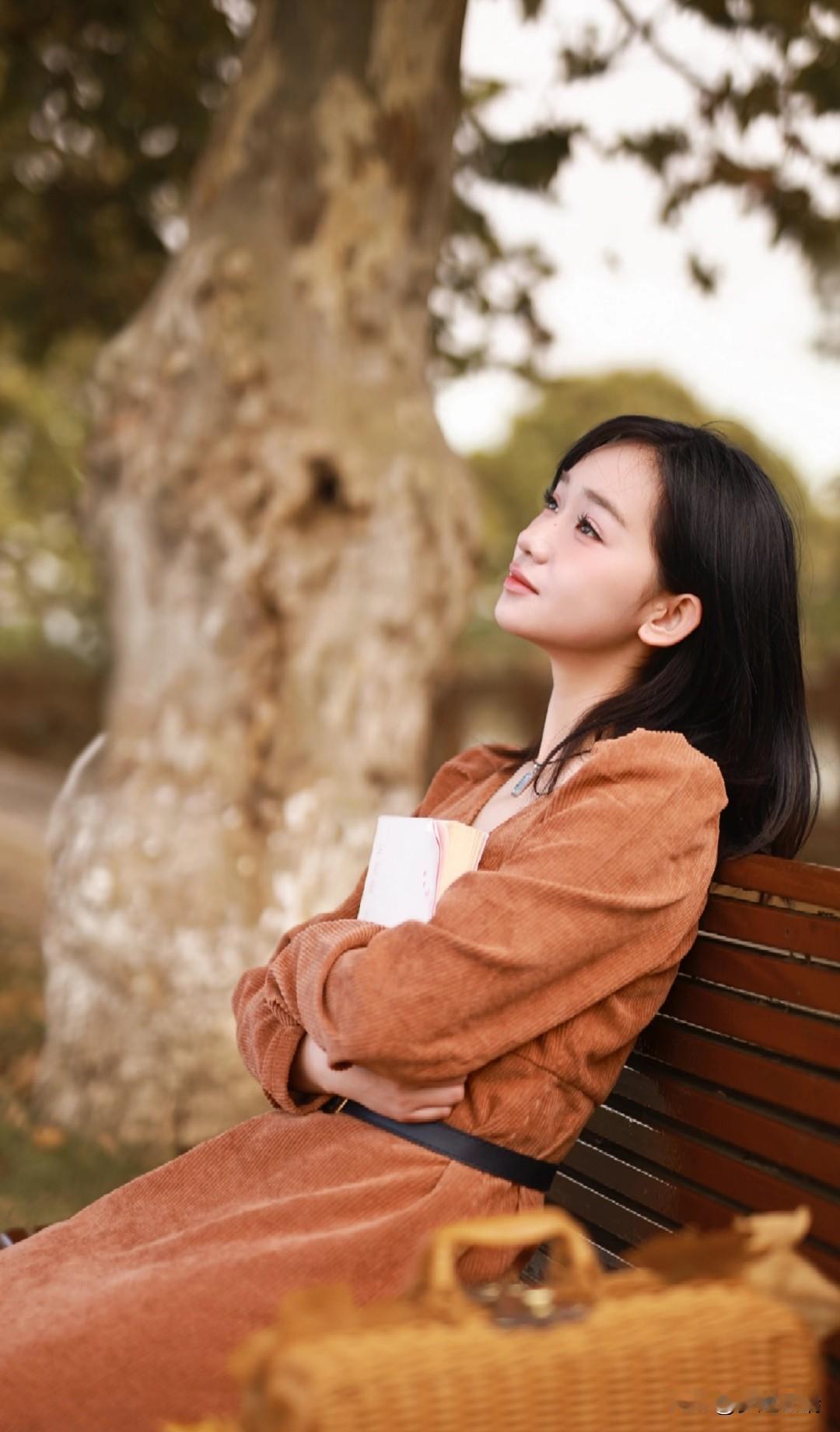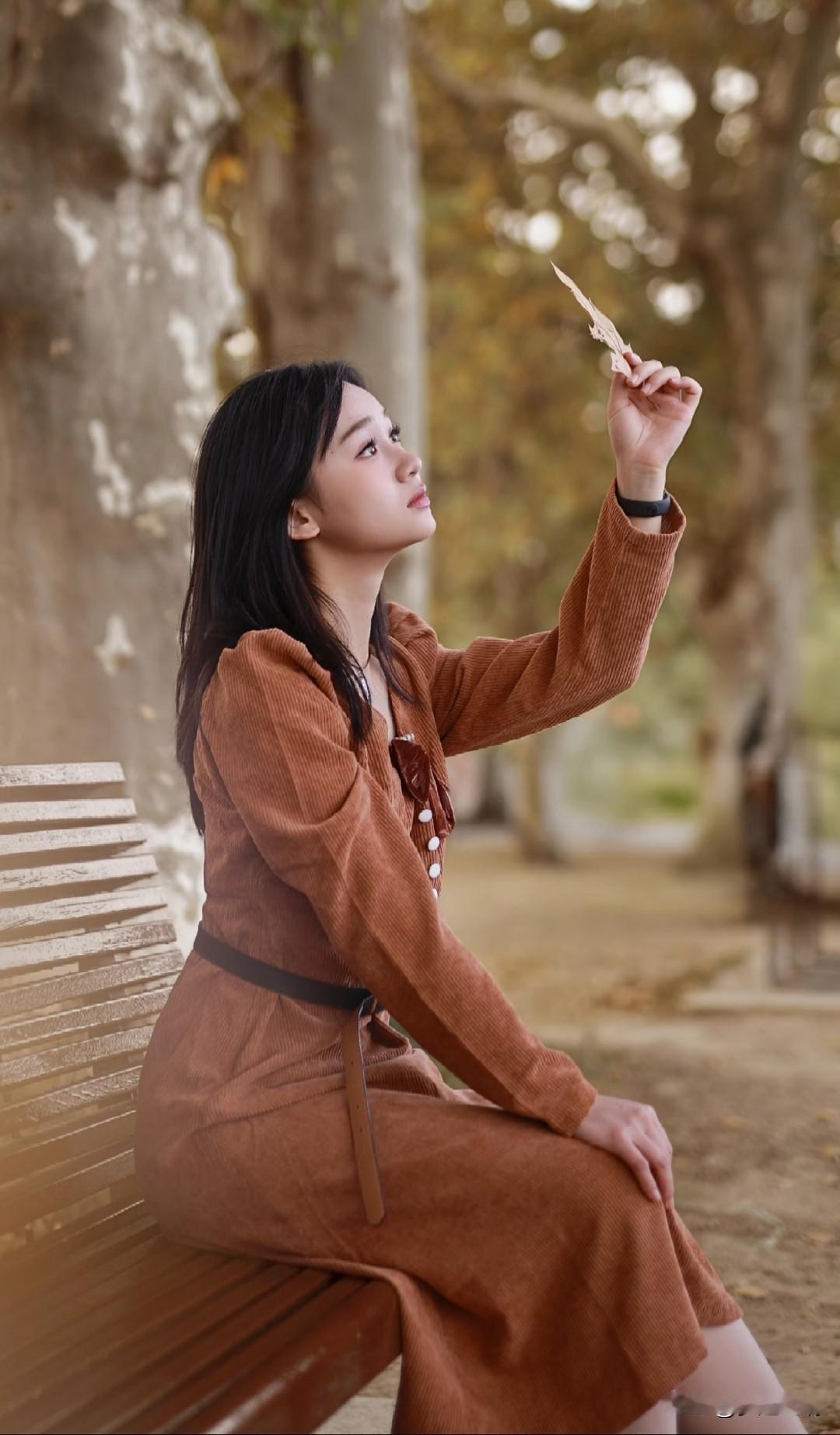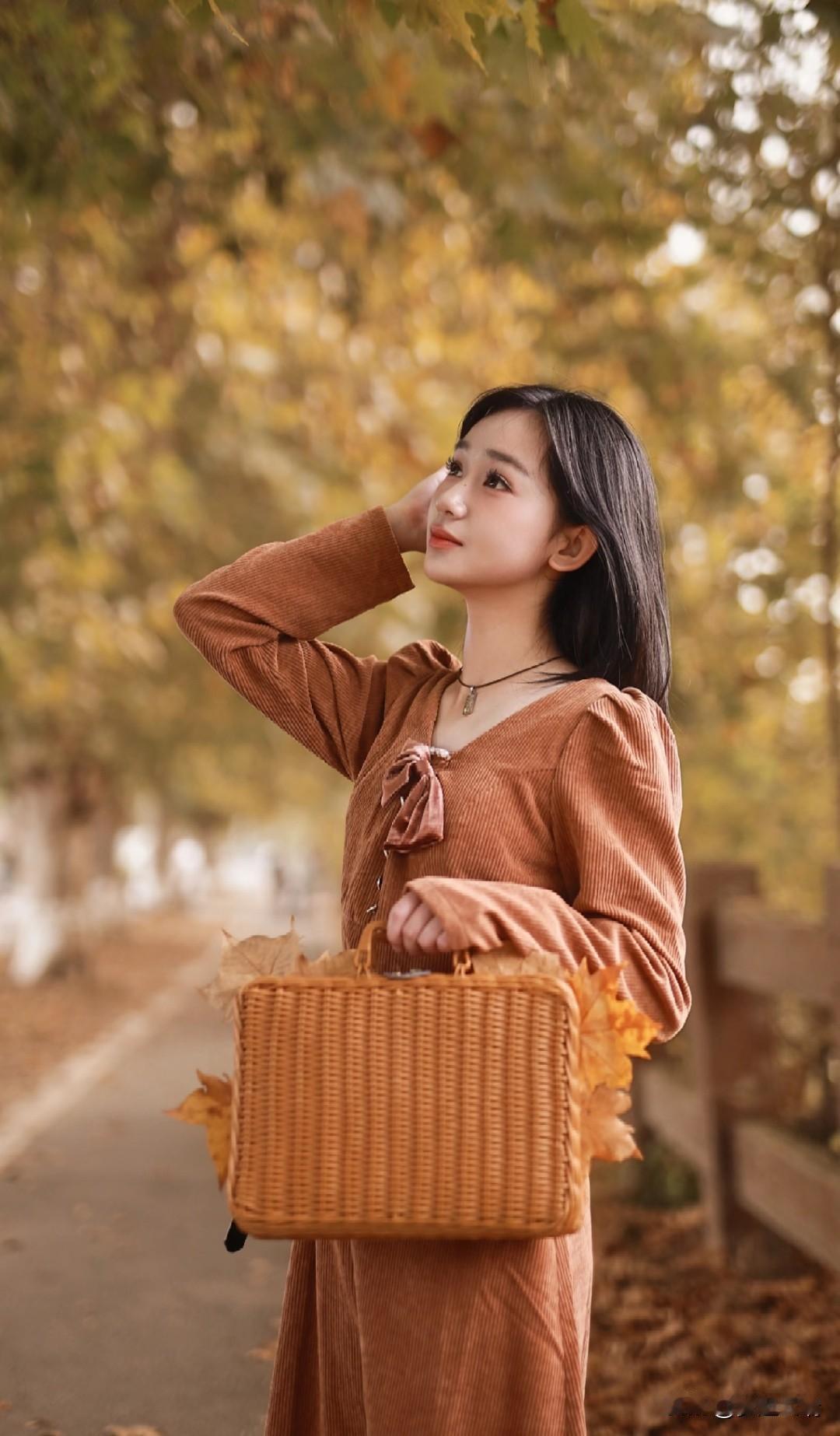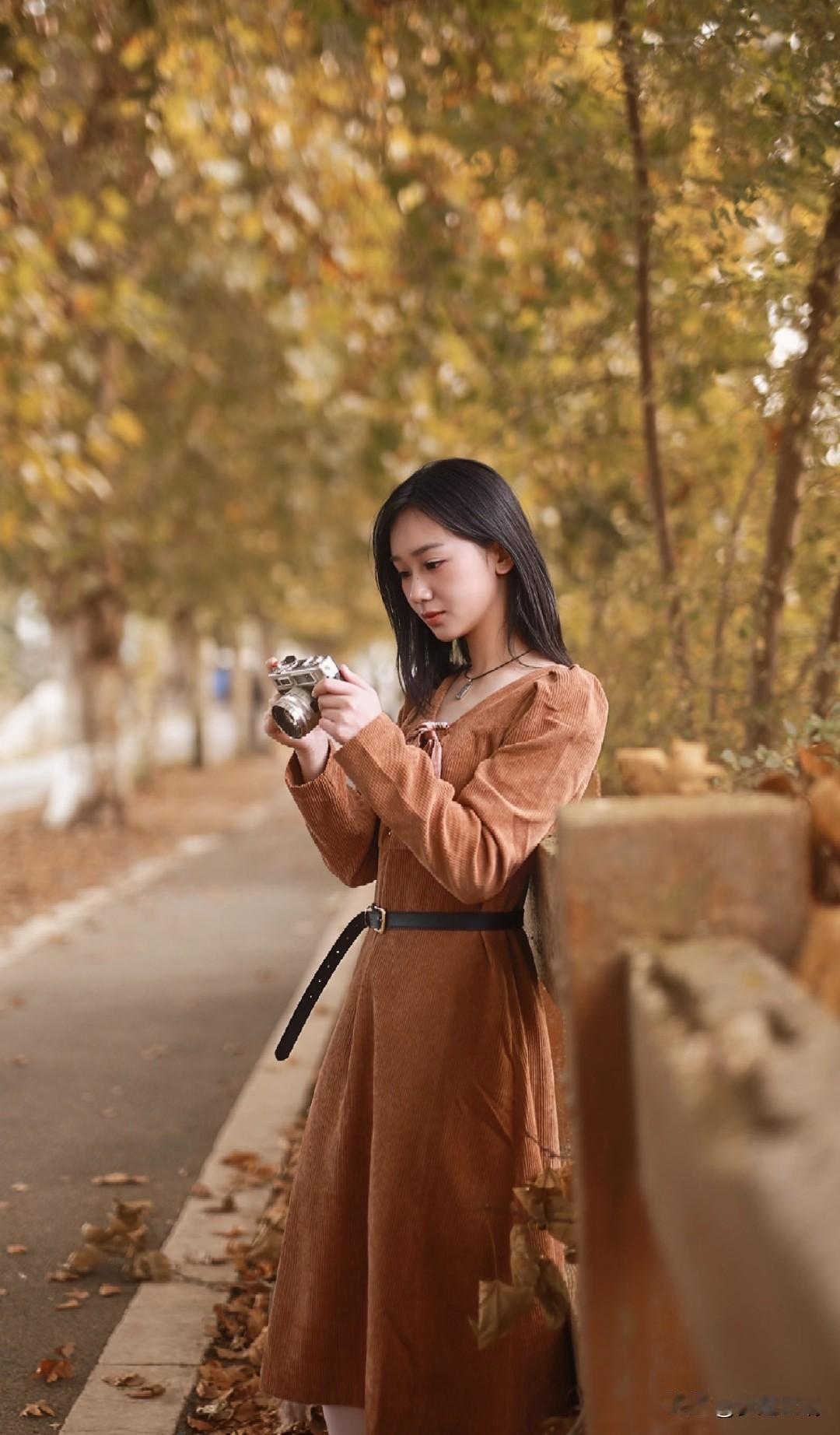 秋日暖阳下,温柔少女侧颜,暖意融融。