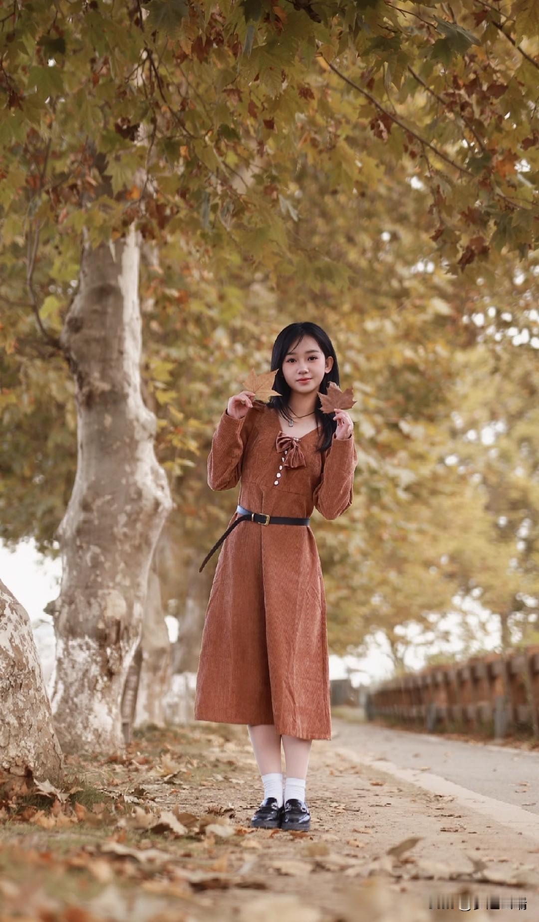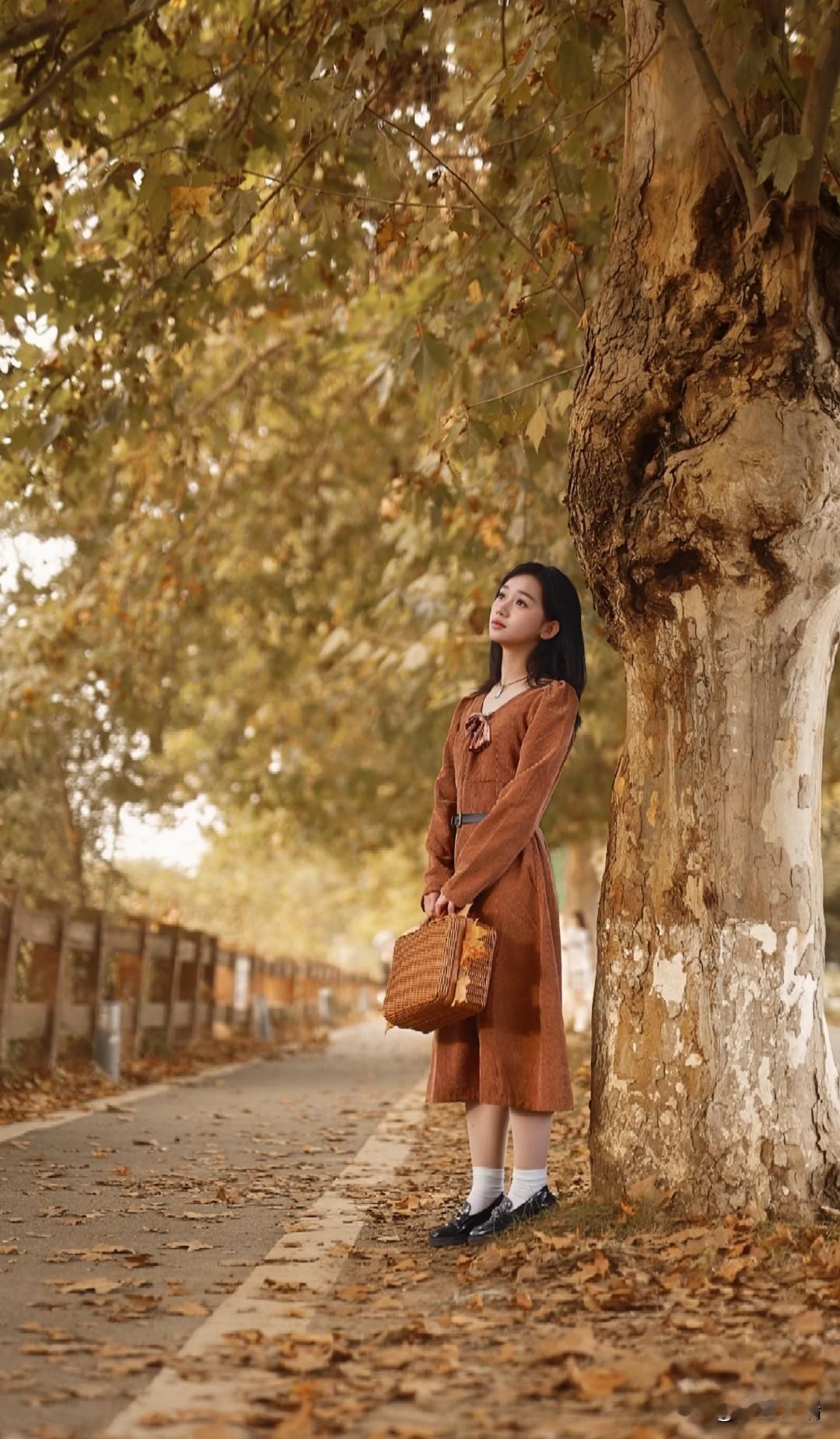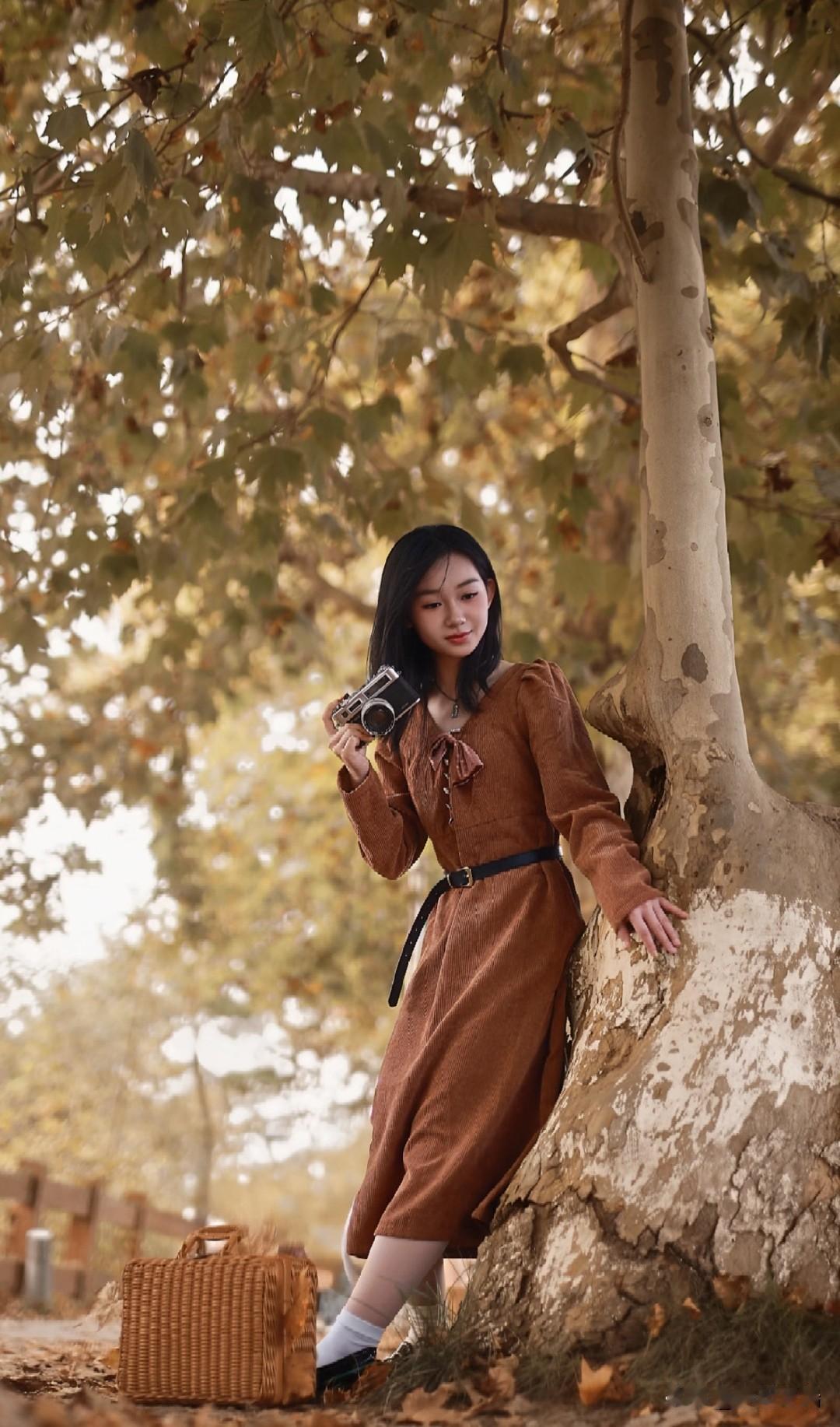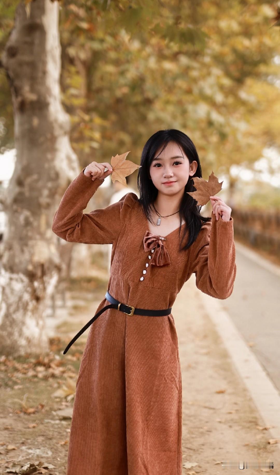 秋日暖阳下,温柔少女侧颜,暖意融融。