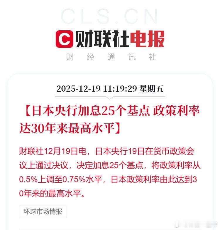 日本央行如期加息25个基点 靴子落地,短线影响已消除,此事翻篇。