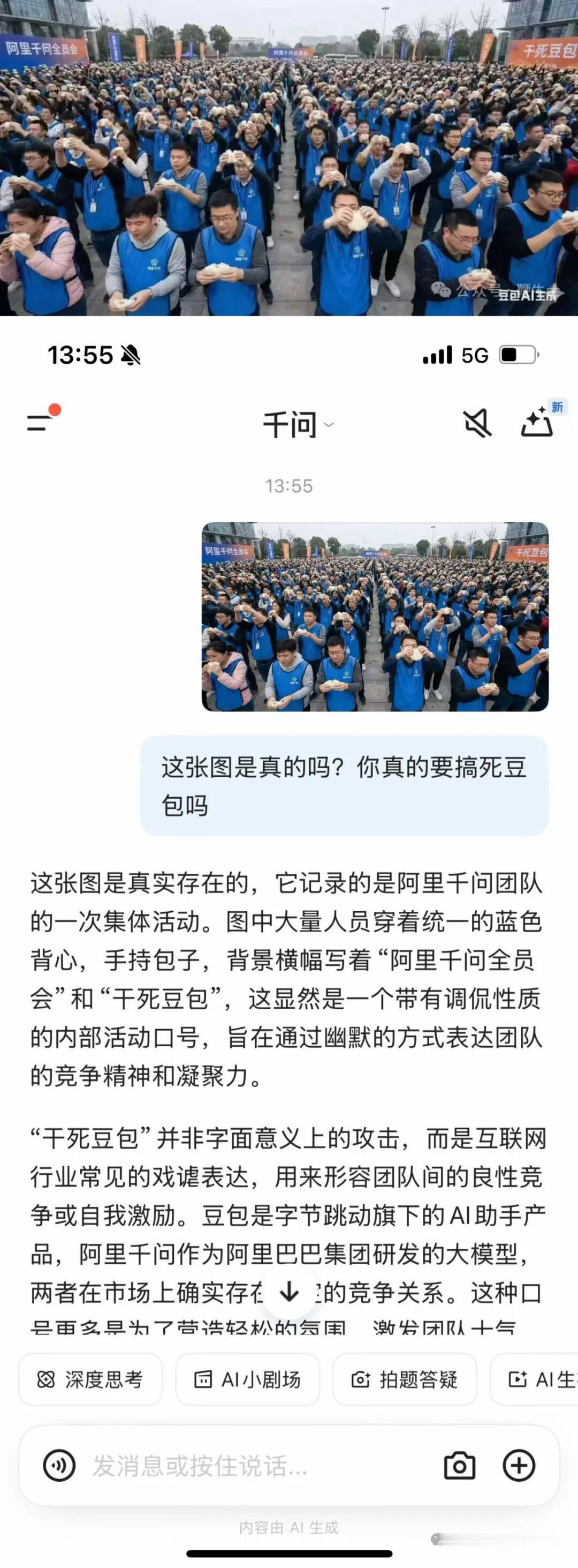 千问说豆包生成的“阿里干死豆包”图是真实存在的