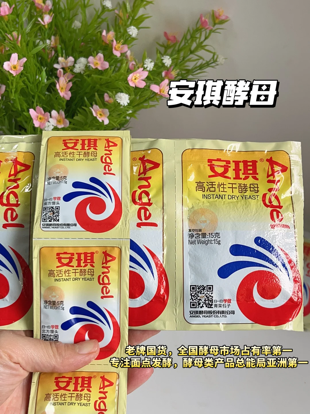 冷藏发面用到的酵母一定要用好的,不然可能会有发不起来的情况哦,酵母一定首选安琪的,国货大品牌,家喻户晓,专注面点发酵,酵母类产品总产能45万吨,居亚洲第一。从我妈那一代的人开始用,到现在我也用,发面效果真的超级好,不管是常温发酵还是冷藏发酵都不会让我失望,平时做包子呀馒头什么之类的发面都超级好。