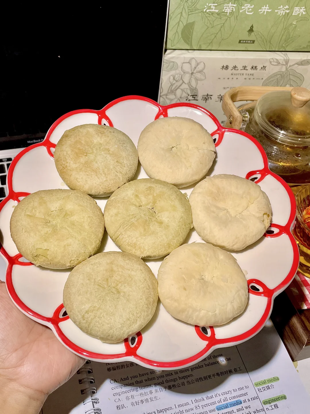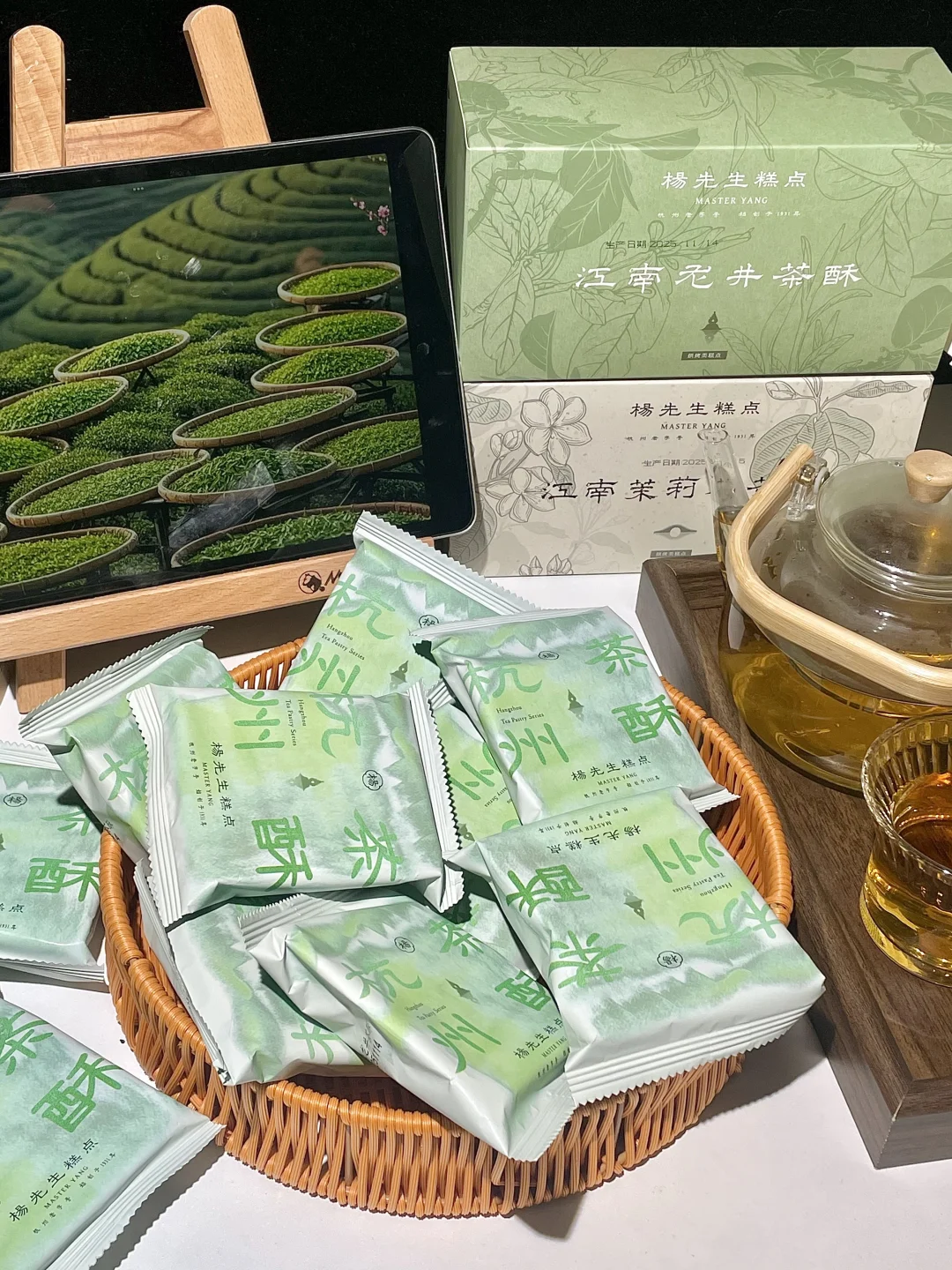 杨先生家的龙井茶酥和茉莉花茶酥 吃多花里胡哨的小甜品,发现还是这种清爽不甜腻小饼子最上头👅!! 主要配料啥的很干净,没有乱七八糟添加!! 吃起来茶香味很足,里面是添加了真实的龙井茶和茉莉花茶~ 饼皮经历12次折叠开酥,吃起来酥软层次分明。。。 茶香🍃混合着奶香,口感绵密清爽,甜腻感不存在!! 打算再多买几盒,发现我奶她比我还爱吃哈哈哈!! 龙井酥茉莉酥爆款零食杭州特产杭州糕点杨先生中式糕点吃了甜品就会开心零食推荐