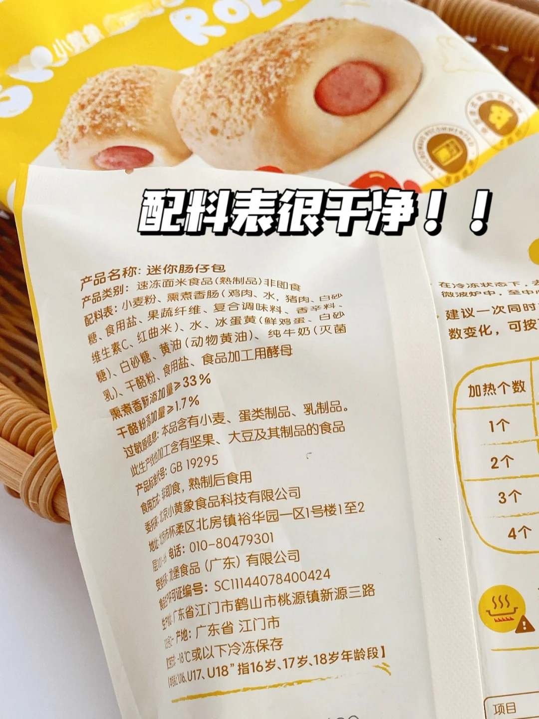 👉不得不说这个小黄象迷你肠仔包真的太好吃了😋,还是李佳琦直播间推荐同款,微波炉叮80秒就可以了,托盒是PP材质🉑️直接微波,很方便。[斜眼R]而且重要的是他们家这个肠仔包里的香肠是没有添加亚硝酸盐的纯肉香肠,无肠衣,小朋友吃起来也很轻松,不会咬不动皮,肠仔包表层还添加了意式帕玛森芝士粉,吃起来咸香可口。[赞R]配料表也很干净,还是国少篮球队、冰球队指定产品,就连国家队小运动员都在吃,大人小孩都可以放心吃‼️