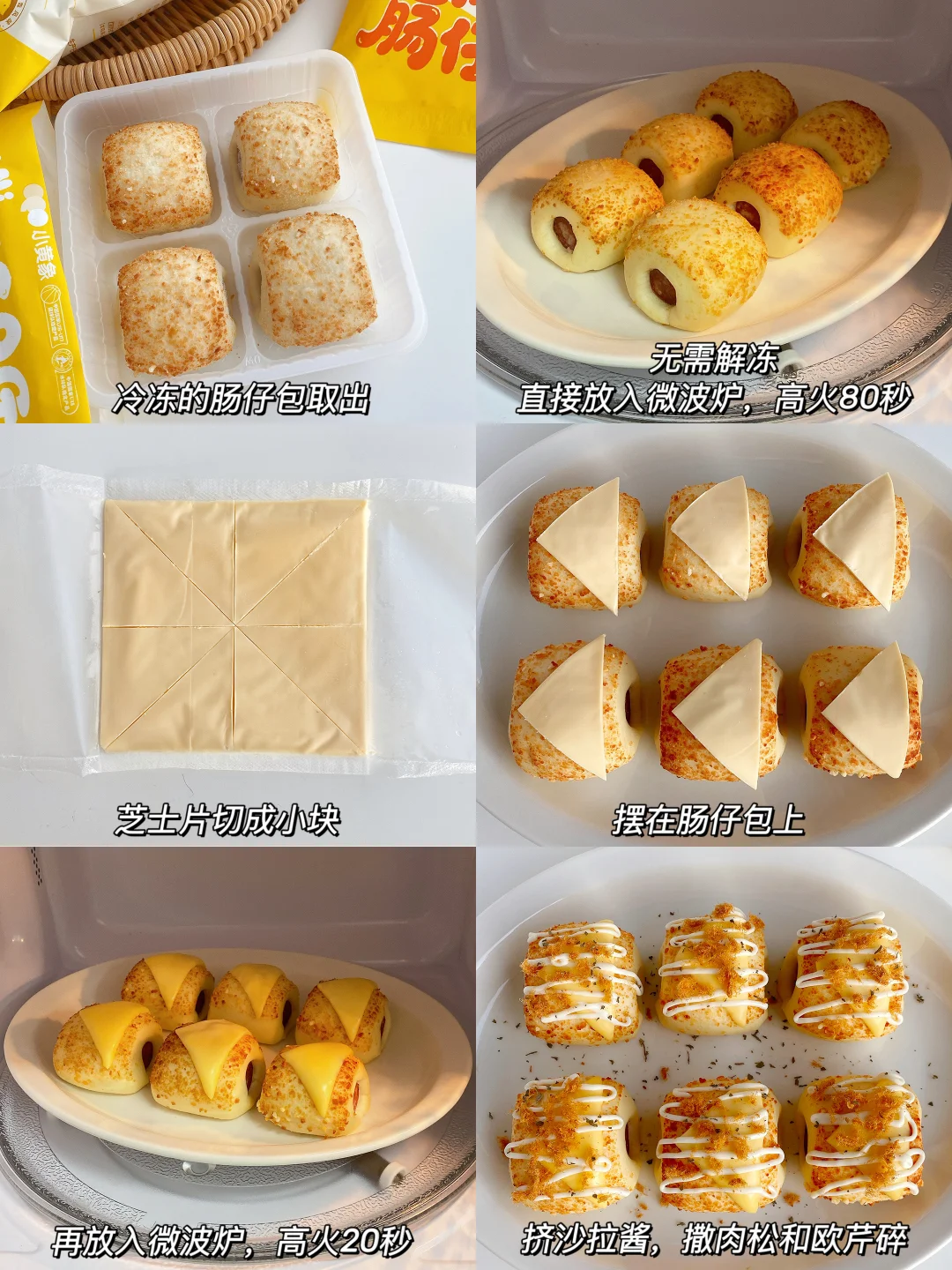 1️⃣冷冻的肠仔包取出,无需解冻,直接放入微波炉高火80秒