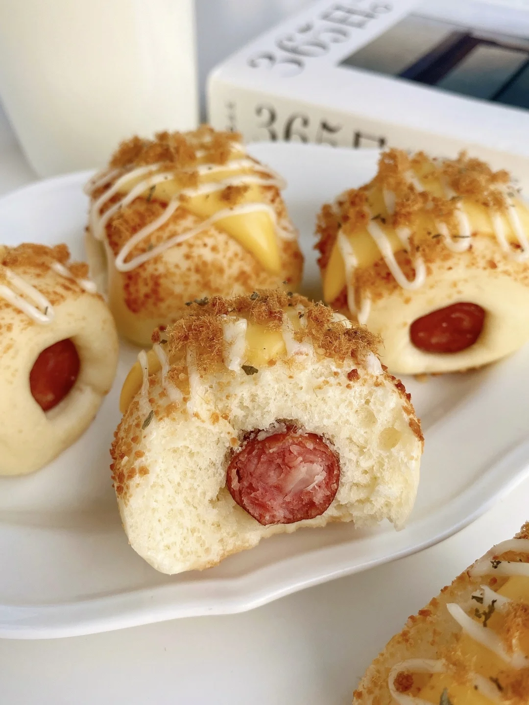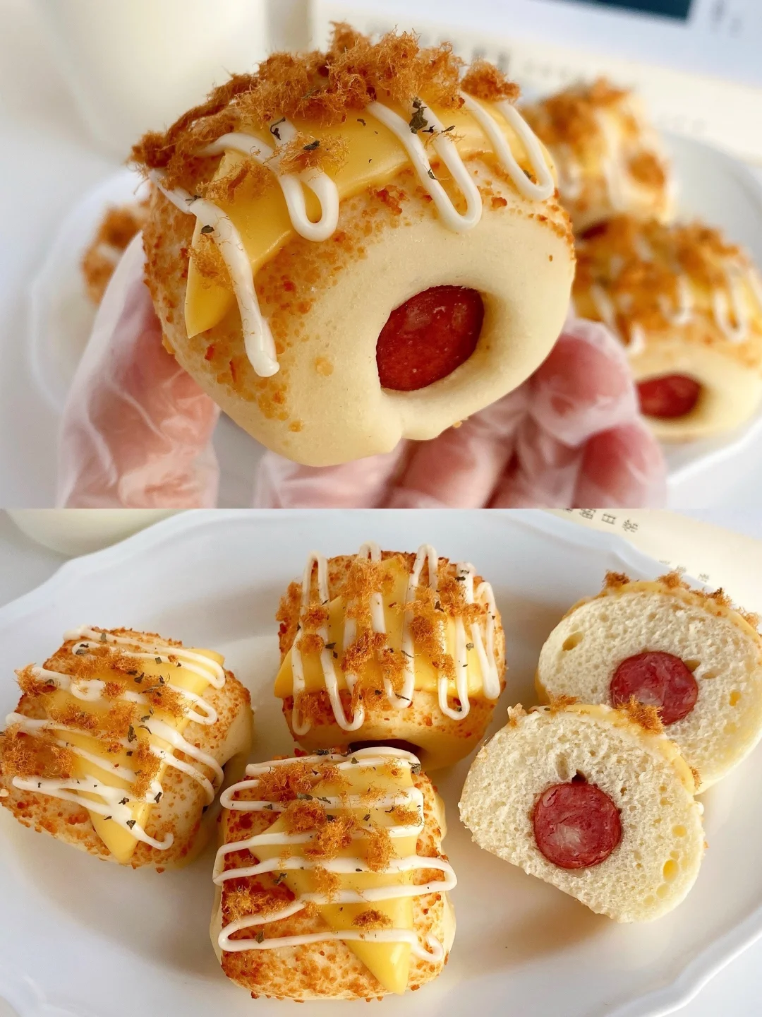 松软的面包+Q弹的香肠+咸香的芝士粉,真的太太太好吃啦‼️