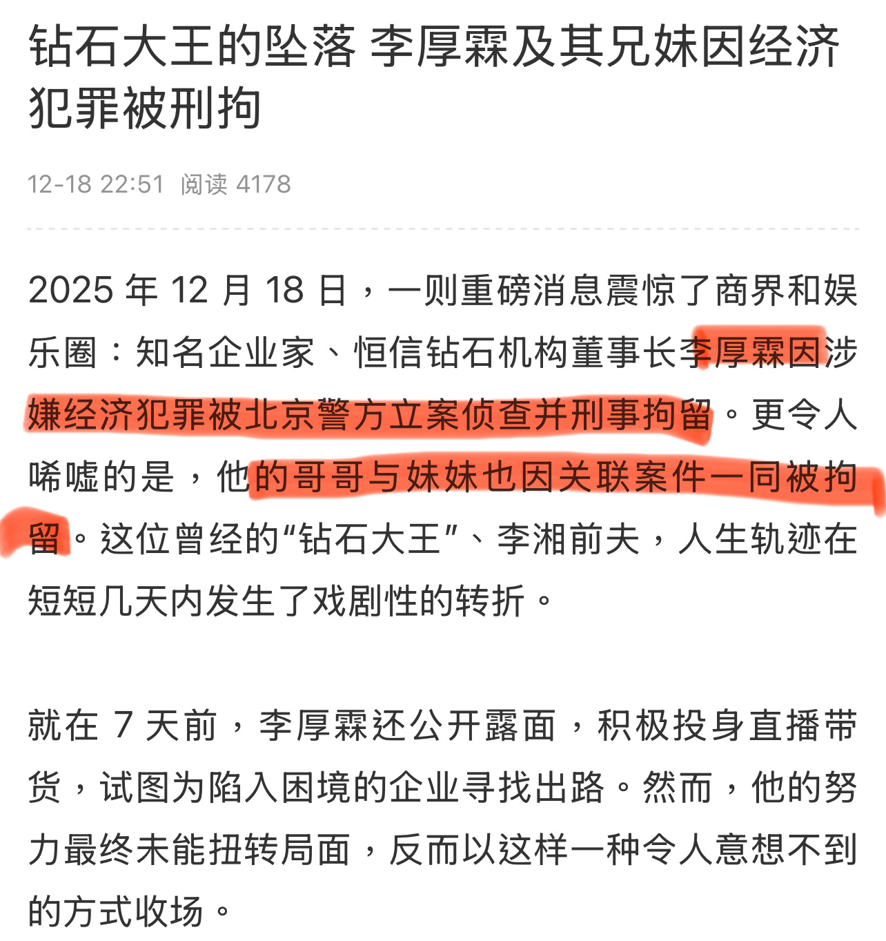 李湘前夫李厚霖被刑拘?曝李厚霖被警方刑拘