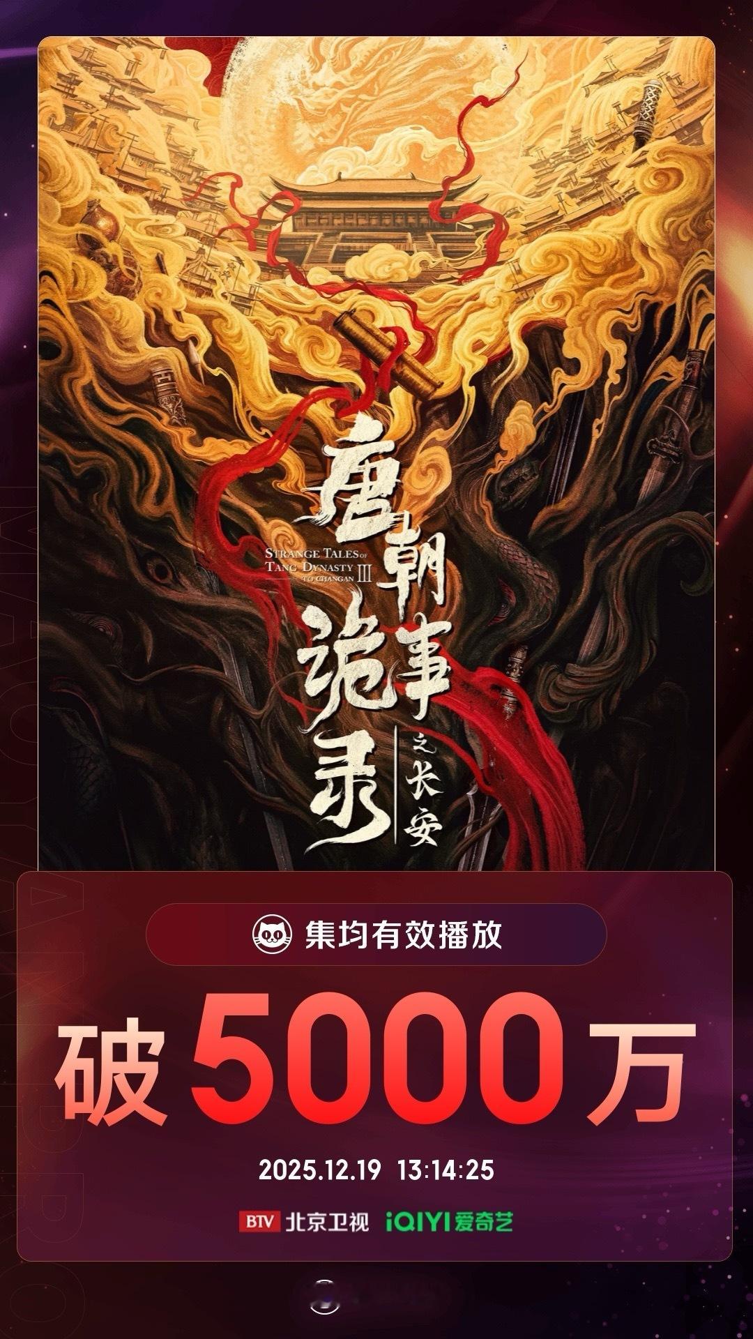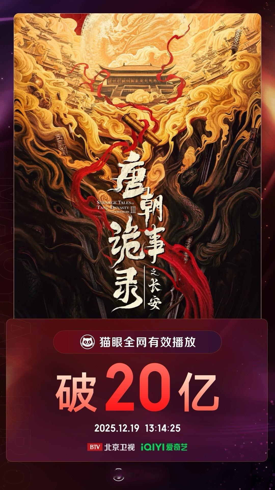 唐朝诡事录唐诡3有效播放量破20亿唐诡3集均有效播放量破5000万 据猫眼专业版数据,领衔主演电视剧《唐朝诡事录之长安》收官热度不减,全网有效播放量已突破20亿,集均有效播放量破5000万!