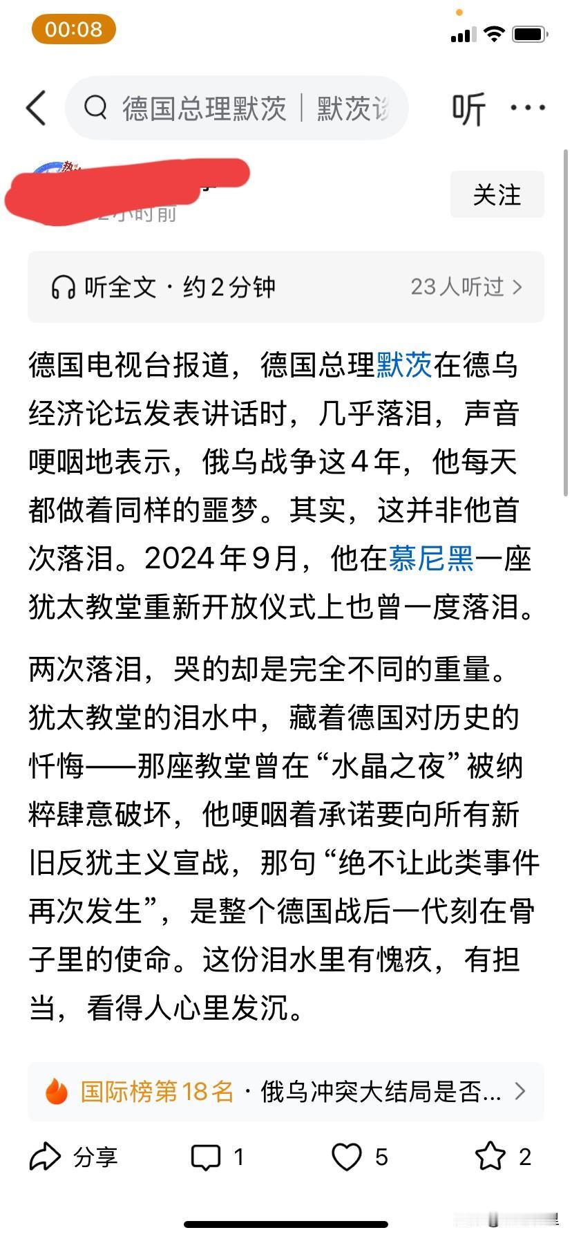 德国总理为乌克兰流泪,德国为支持乌克兰出钱出力,德国是欧洲国家中出钱最多的,但我感觉泽连斯基有点看不起德国总理,尤其是对前任总理舒尔茨,不但不尊重德国,还对德国总理想指责就指责,德国给钱给慢了都会被泽连斯基训责,但对法国总统和英国首相,泽连斯基非常尊重,虽然这两国没有德国给的钱多,在欧美国家中,泽连斯基最尊重英国首相,超过了美国总统,在英国四任首相面前,它都是毕恭毕敬,说话有礼貌,它对拜登也很尊重,但对特郎普是非常不满,却敢怒不敢言,所以德国出钱出力再多也没用,泽连斯基打心眼里看不起