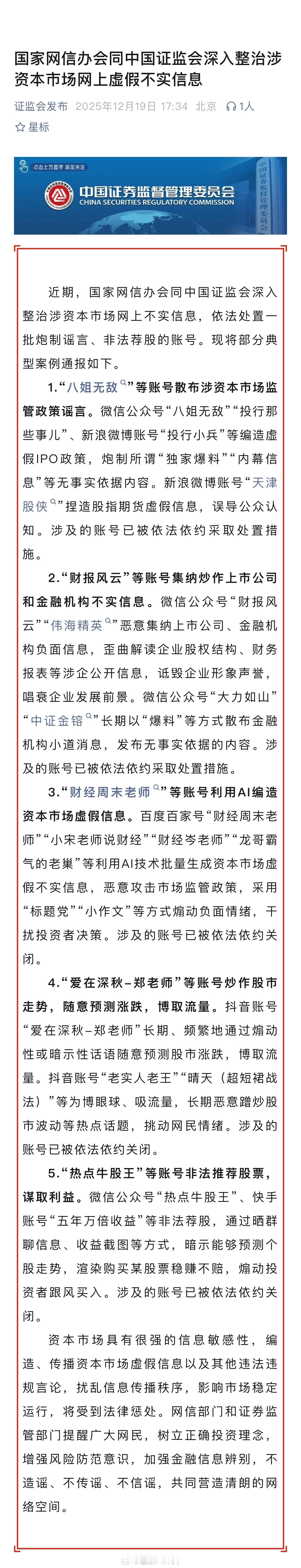国家网信办会同中国证监会深入整治涉资本市场网上虚假不实信息