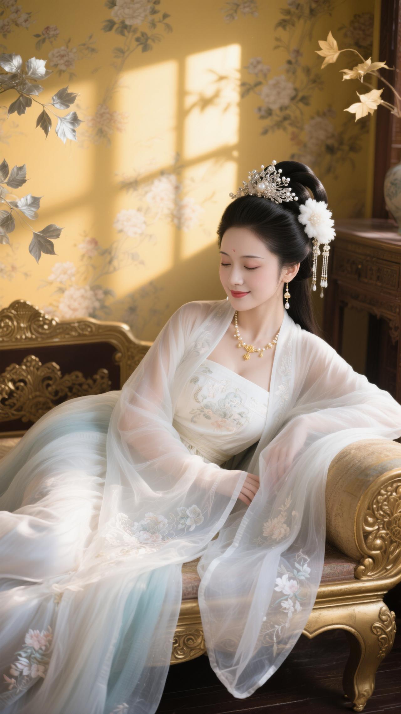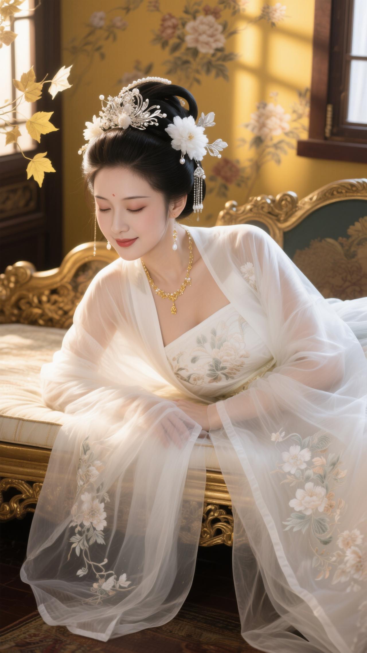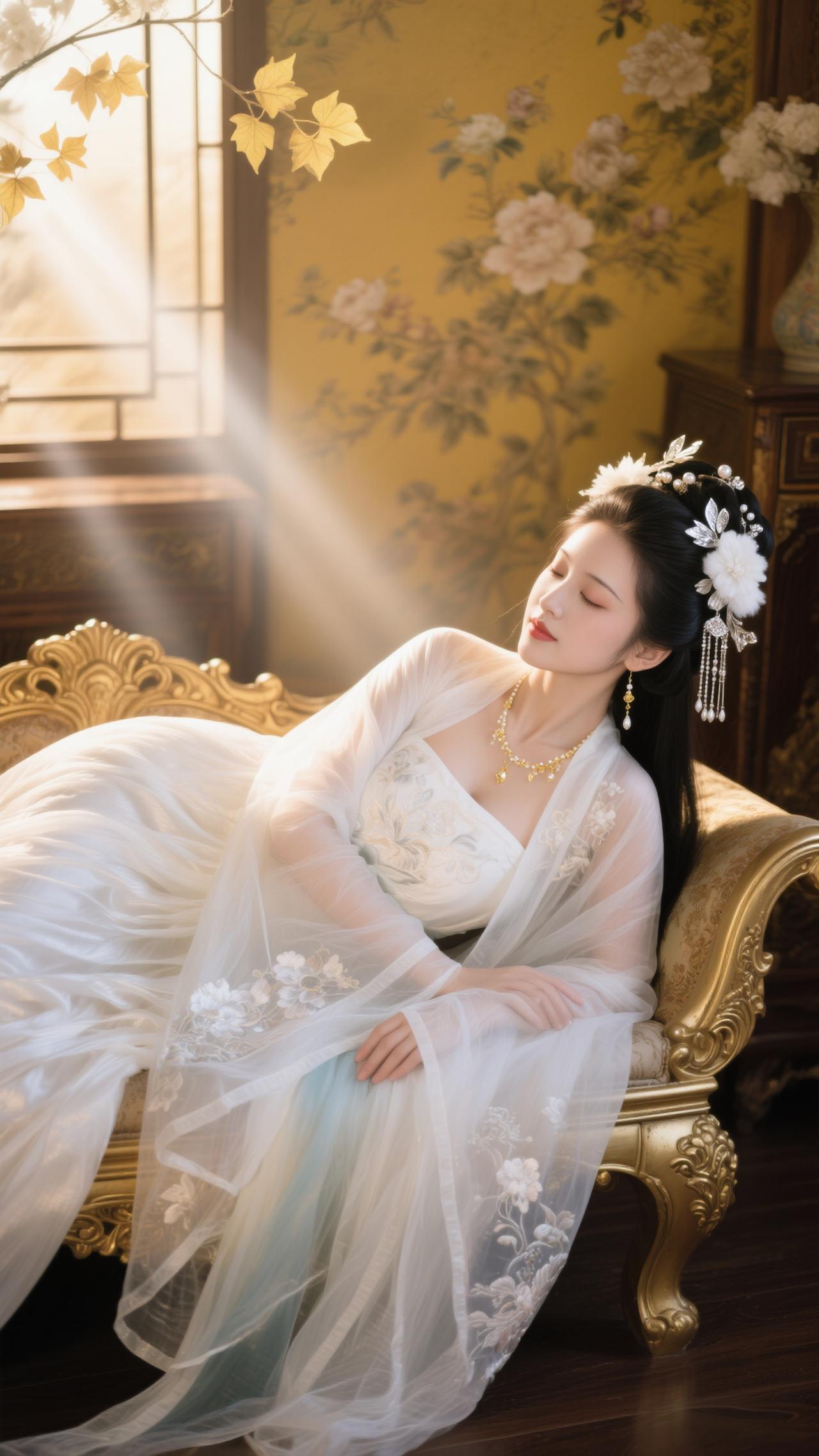 《醉花阴·金榻慵眠》 白縠轻笼金榻静,鬓畔花凝影。 暖日透窗纱,一叶秋光,偷落青丝顶。 半醒半醉慵梳鬓,笑把流光省。 不解梦魂遥,一晌春闲,都付风前影。