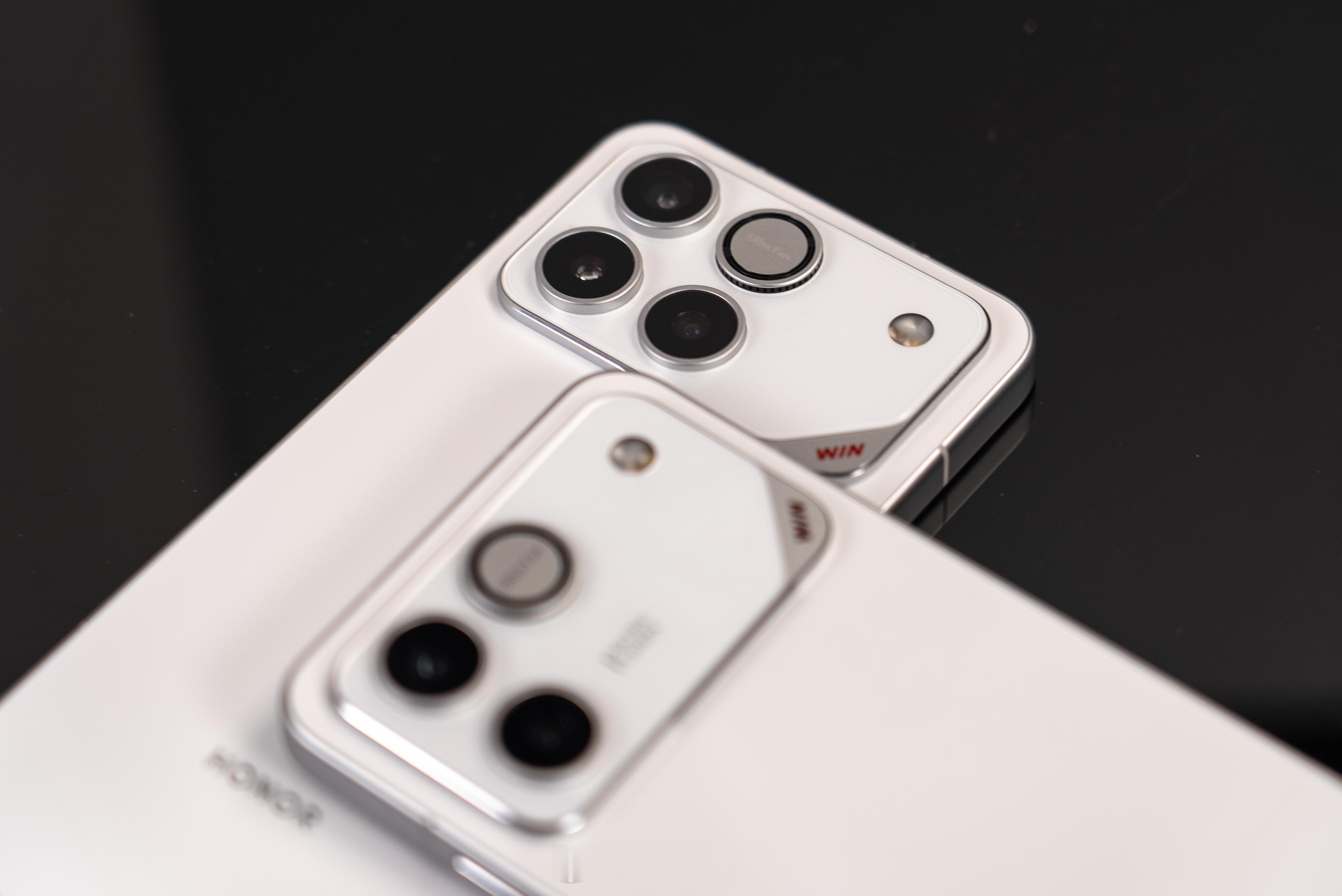 WHYLAB图赏荣耀 WIN、WIN RT 真机实拍,一共三款配色:指定赢(银)、 快开黑、不怕蓝,谐音梗属实是被荣耀玩明白了。不得不说,横置大 Deco 模组的设计加上散热风扇确实吸睛,镜头虽有轻微凸起,但和背板的一体感超强,质感我可以打满分。你给这样的设计打几分?