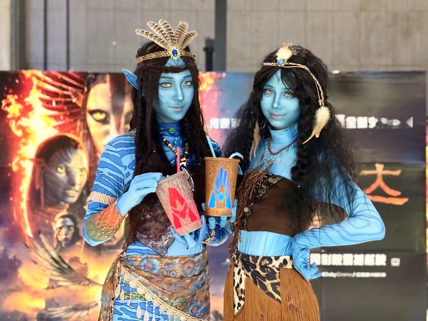 看阿凡达3身边坐着真阿凡达 起猛了看见纳威人戴3D眼镜!影院里coser的蓝皮肤在暗光里发着柔色,看片时比我们还入戏,这画面又萌又酷,合影必须九宫格~