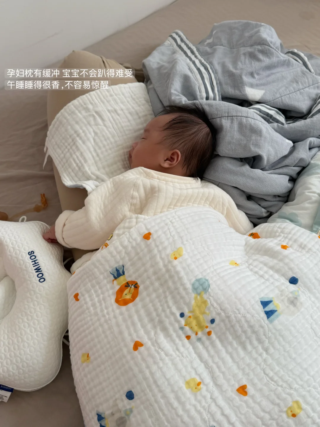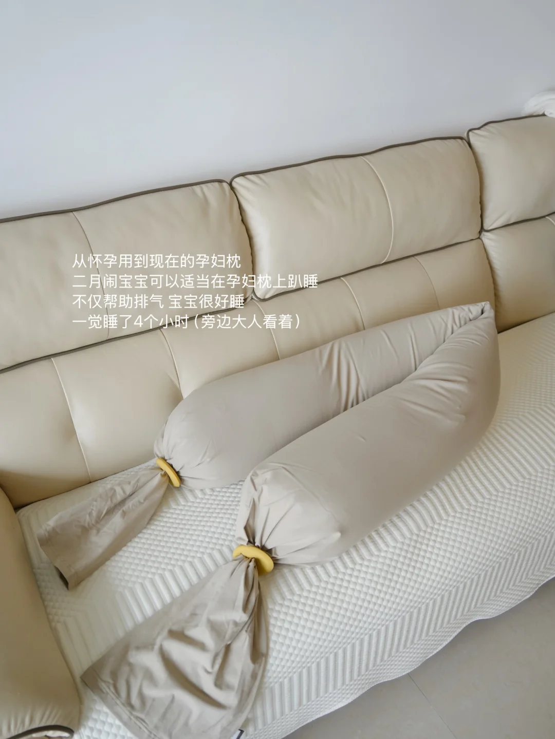 到现在都还在用的孕妇枕,二月闹宝宝直接趴上面睡的很香,缓解肠胀气,特别有帮助。有时候午睡也直接当枕头睡,灵活调整形状也能当床围,真的用回本。