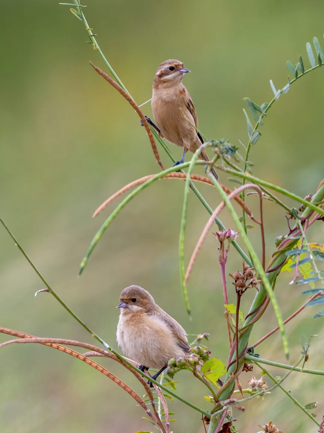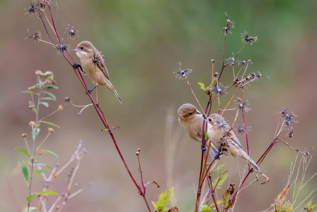 原创拍摄于2024.11 中华攀雀,雀形目攀雀科攀雀属。 中华攀雀是非常精致的小鸟,面部有黑色的眼罩,不过雌鸟的眼罩不太明显。其实他们最著名的是超级独特的巢穴建筑技能。每年的4~6月,雄鸟就会非常积极的筑巢,巢的形状像梨,成了一个袋子,带管状延伸,侧面入口,安全感十足。 去年年中我还专门跑到北方的河北,看到了筑巢的中华攀雀,如图78,他们在我国北方分布还是挺广泛的。这次这个种群南迁到了广东过冬,竟然不怎么怕人啊,希望它们能够平安过冬了。