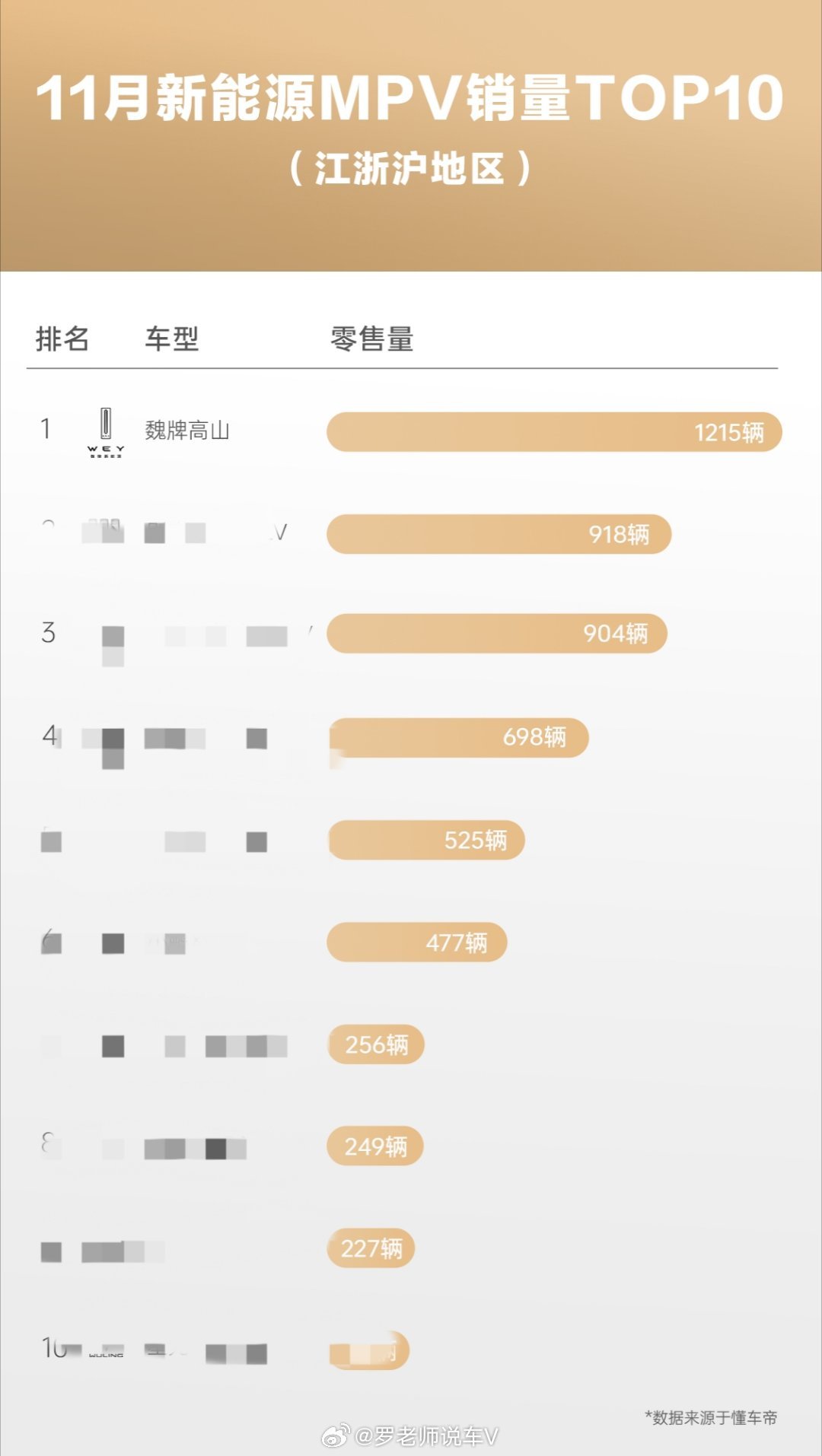 魏牌高山全国MPV销量冠军开启MPV家庭新时代江浙沪的同学是真喜欢高山啊,11月高山在江浙沪销量排名第一