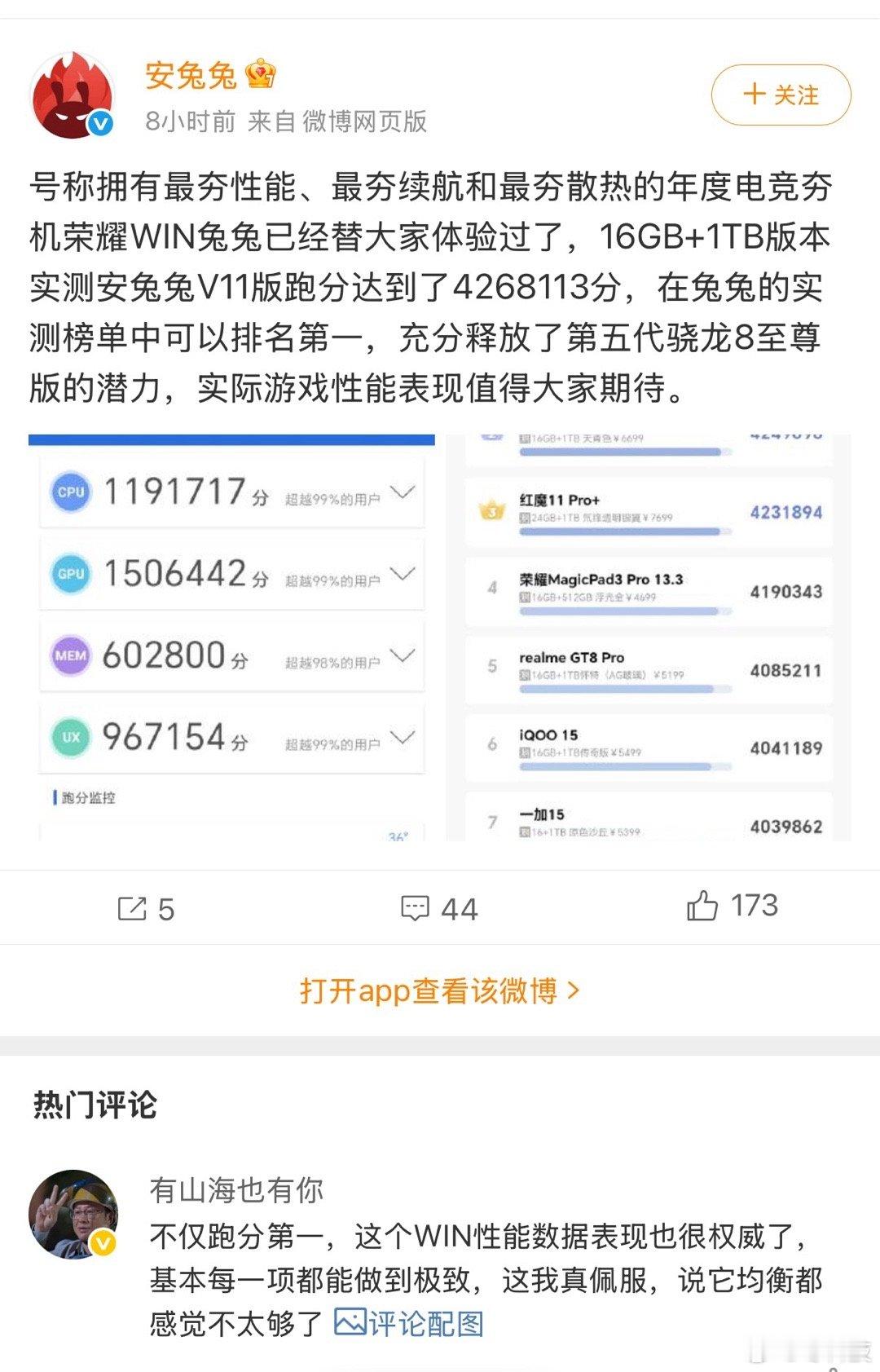 太猛了,这次荣耀WIN真的赢麻了,碾压红魔11Pro和IQQO 15凭实力拿下榜首,不愧是电竞夯机!