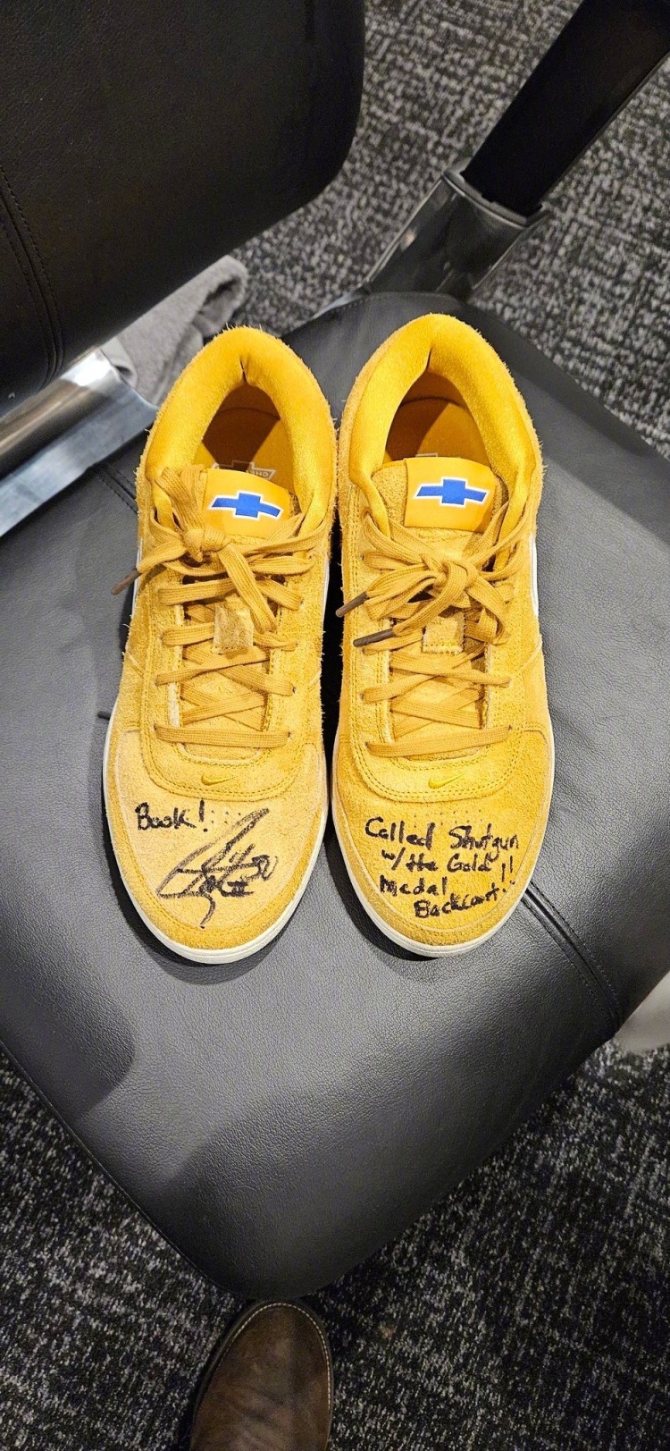今天库里穿着了布克的签名鞋Book 1,赛后他还签上名把鞋还给了布克,布克也带着这双有库里签名的Book 1出席了发布会。布克说:“他现在是球鞋市场的自由球员。和UA解约的第二天,他就找我要了几双鞋。我把最热门的款式都寄给了他,很高兴今晚看到他穿着我的鞋比赛。”布克说自己一直在为耐克招募这位最大牌的球鞋自由球员。他还补充道,希望库里能尽快穿着自己的二代签名鞋。