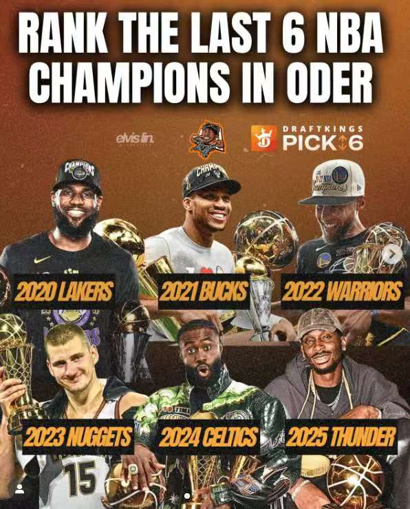 最近前NBA球员,“魔兽”霍华德在一档播客节目中,谈到了NBA近六年来联盟里总冠军球队的夺冠难度。 难度由难到容易依次为:2020年湖人、2022年勇士、2021年雄鹿、2023年掘金、2025年雷霆和2024年凯尔特人。 对于他这个言论,在网上遭到了很多球迷质疑,表示那年的园区赛,有很多球员因为各种客观原因,根本就没能发挥真实水平,甚至有些球队阵容都不齐,所以说2020年的冠军最难,不够严谨。 同时2021年的雄鹿,应该才是夺冠最容易的球队,他们在总决赛遇到了吃满赛程红利的太阳,随后拿下冠军。