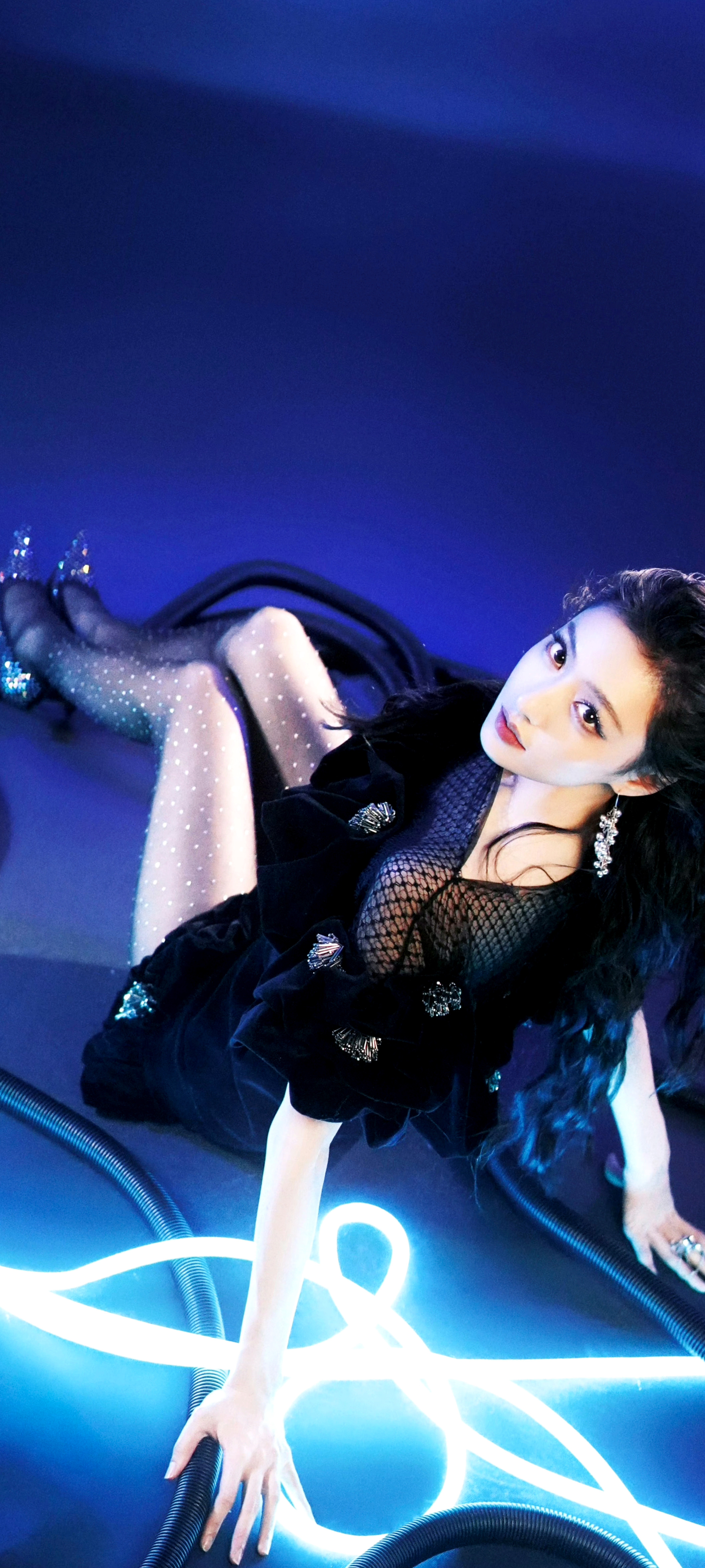 单依纯 蓝色长裙,蓝色丝袜,蓝色高跟鞋💙💙💙单依纯