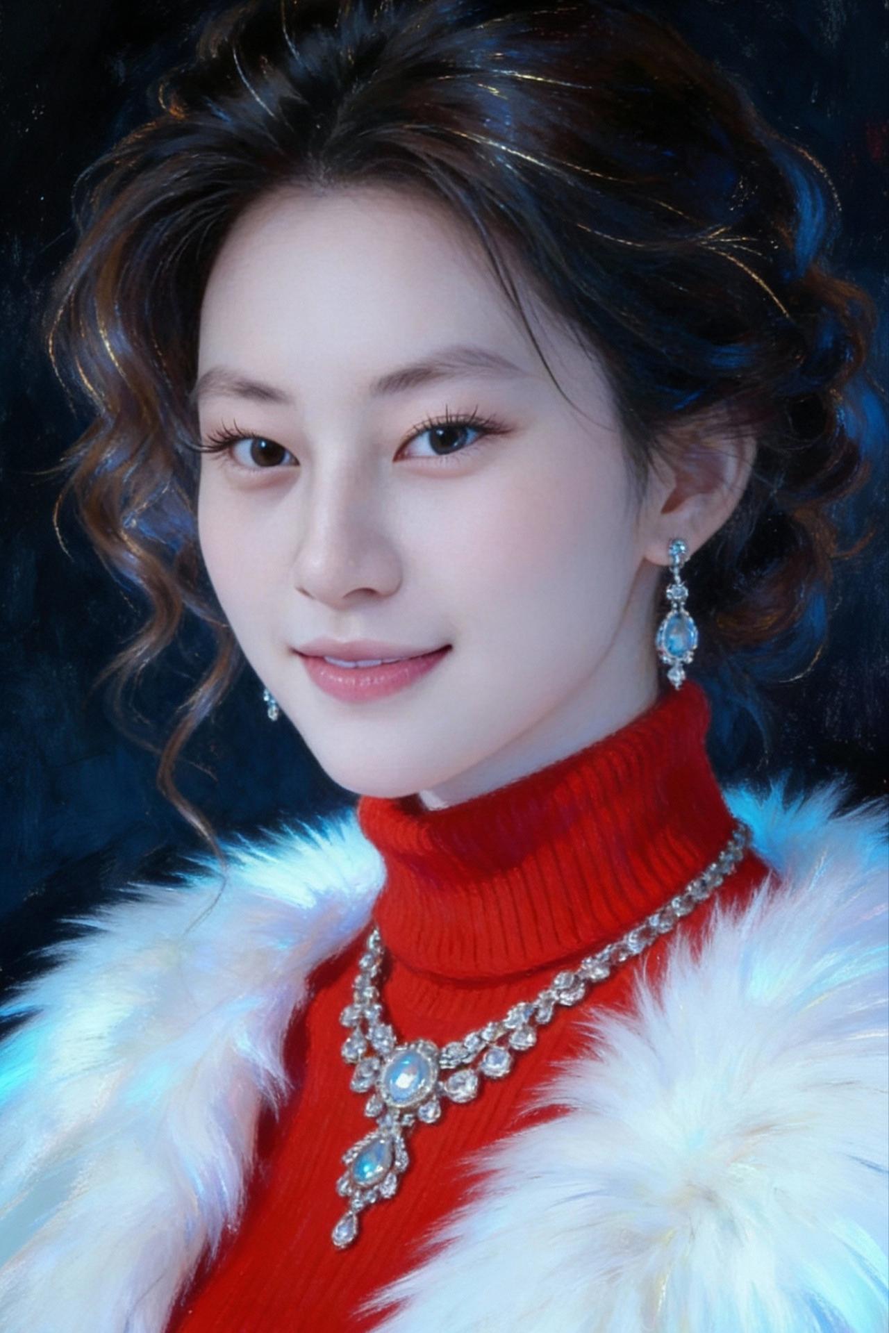 冬日暖阳下的优雅少女,红衣与珠宝的完美搭配,尽显高贵与温柔。🌞💎✨