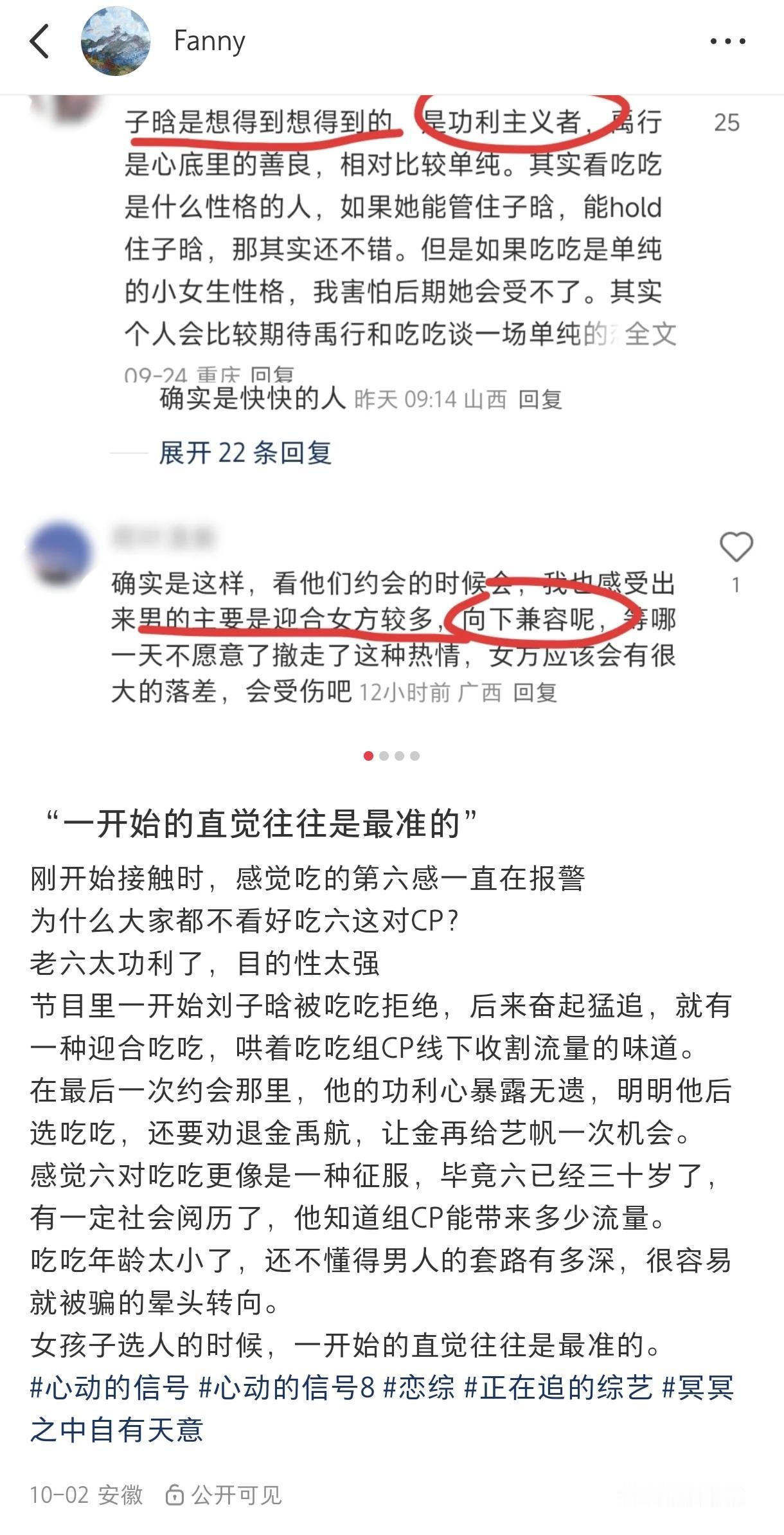 很玄学,但也很准 尤其是在感情中,女生的第一直觉真的很准 可有时候人也是矛盾的,宽容的,尤其是不自信的 经常自我怀疑,是不是再给对方机会尝试一下 这继续一接触,就进入了沉没成本的圈套 而且是在录节目那样的环境中,更容易被迷惑 人毕竟是高级动物,生理喜欢很难长久 祝愿吃吃遇见真正懂得珍惜她的