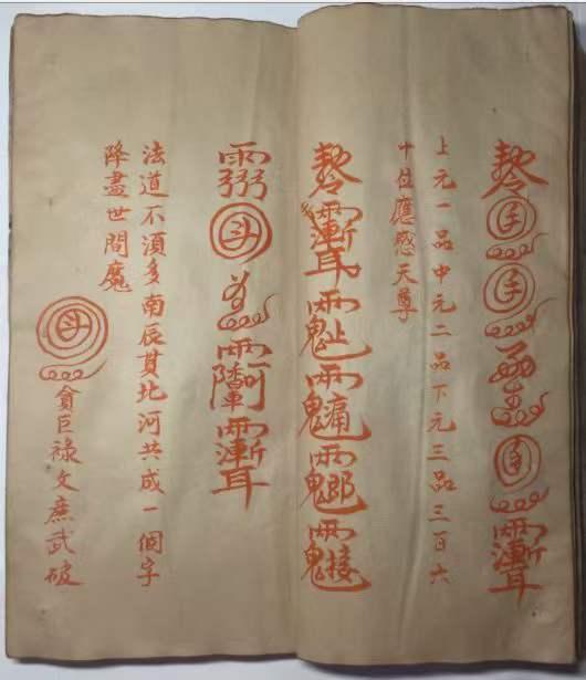《道家神符》内有讲雪山神咒,天师神符,北帝收邪符咒令,断血符咒令,铁牛铁马符令,四柱平安贴符,禁口舌符,伤鬼符,护身符,退病符,禁恶事符,降鬼符等等,41筒子页。