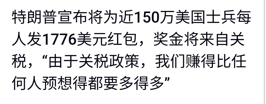 美当地时间17日,特朗于当晚全国电视讲话中宣布,将为近150万美军人发放现金,每人1776美元。 看来美国的经济确实不行了,泡沫太大,随时都有崩盘的可能,竟然会想到发现金这种差点子,难道他们不知道,发现金会让人产生不劳而获的想法吗?这跟毒药一样,发得更多,民众就越不想劳动,不劳动,社会经济怎么发展?劳动最光荣,难道他们不知道吗? 建议派几个专家过去,告诉他们,这种行为,就是恶意发钱。 算算日子,年底快到了,按往年的惯例,澳门、新加坡估计也快要给民众发钱了,建议他们发的时候,咱们不要报道,不要让这种坏习惯,乱了咱们一颗只为劳动的心。 红包虽可爱,劳动价更高。