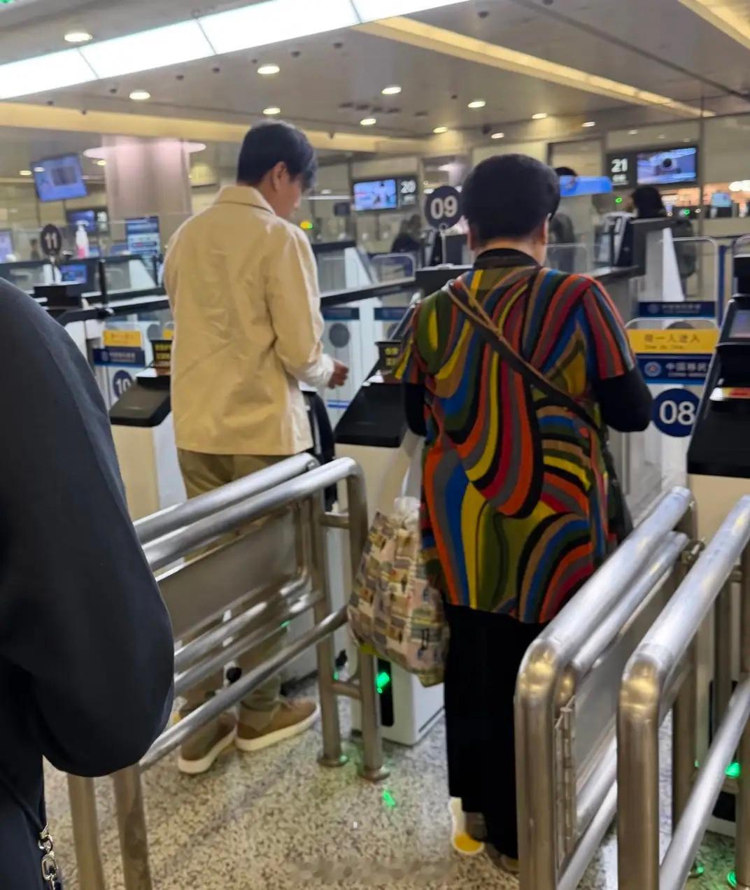 伊能静秦昊夫妻现身上海机场,疑似带家人出国旅游。57岁伊能静的穿衣打扮有些土气,背影看起来像保姆!