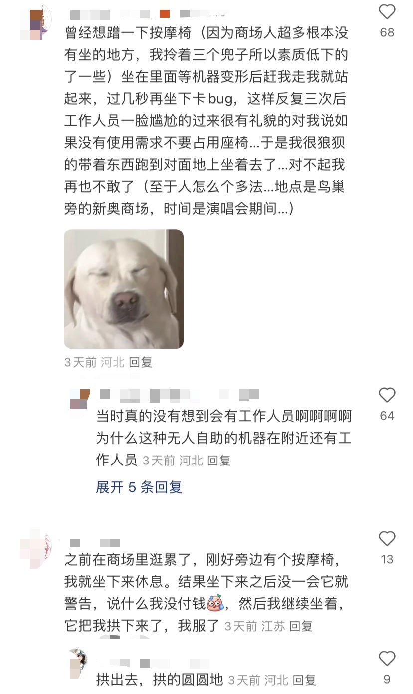 商场见到过一姑娘,本来就瘦还胳膊受伤了,吊着白布,没地方坐坐按摩椅上了,没多久就听见了啊,哎哟,救命的惨叫。。。脸都是青的[捂脸哭]