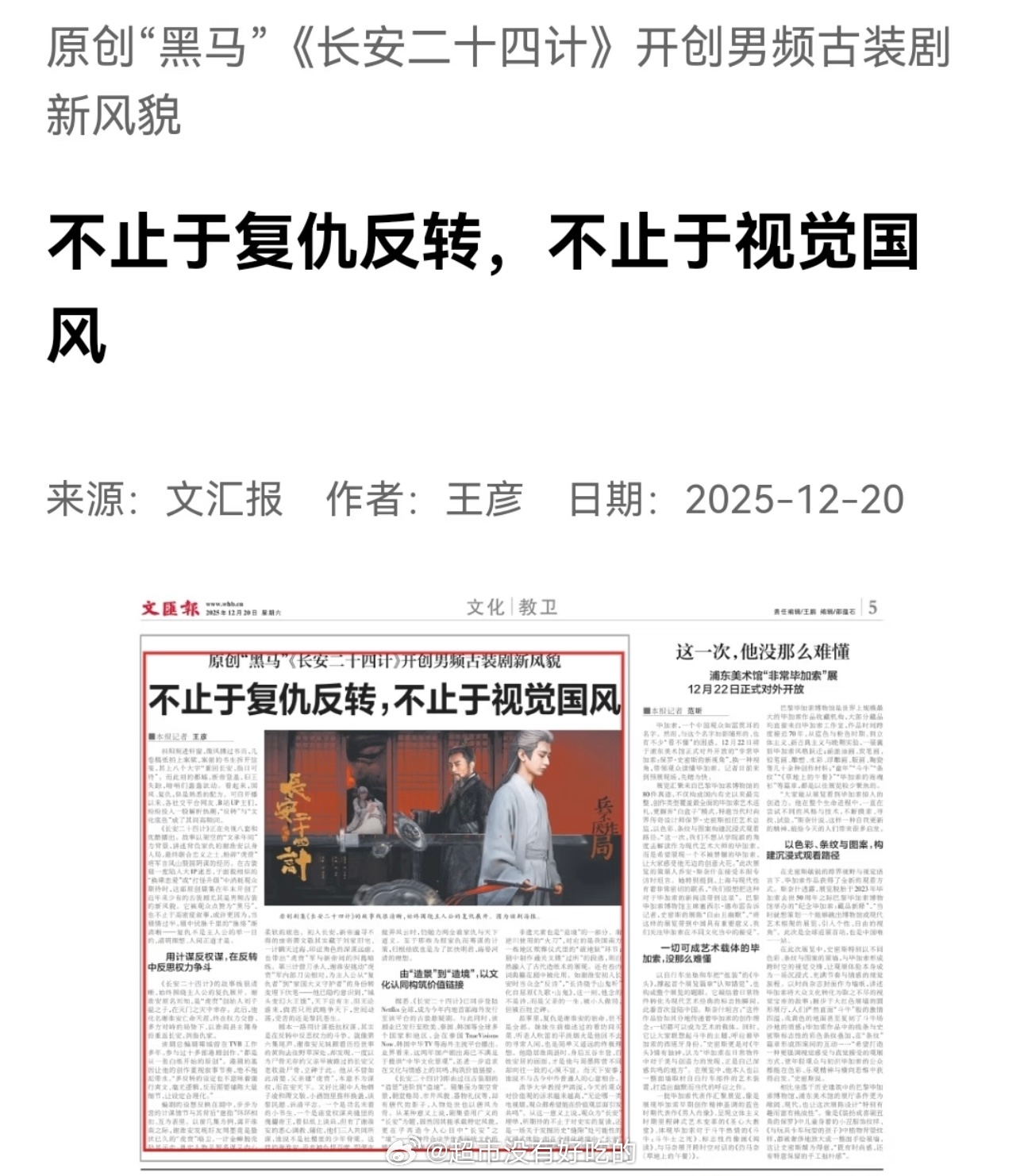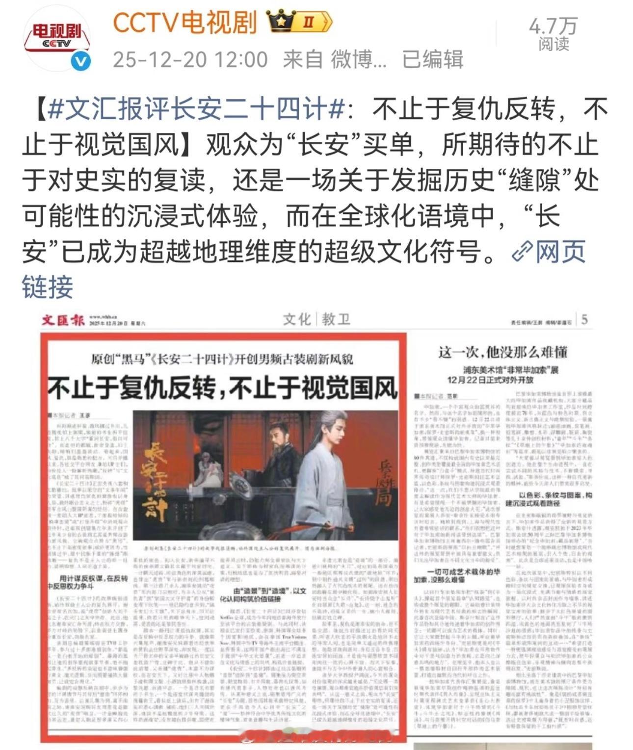 CCTV→文汇报评成毅长安二十四计原创“黑马” 长安二十四计 开创男频古装剧新风貌