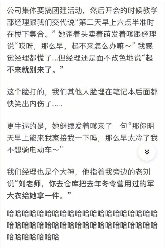 我原来的一个女同事,比较open,属于情史极混乱的,前前后后交了20几个男朋友。