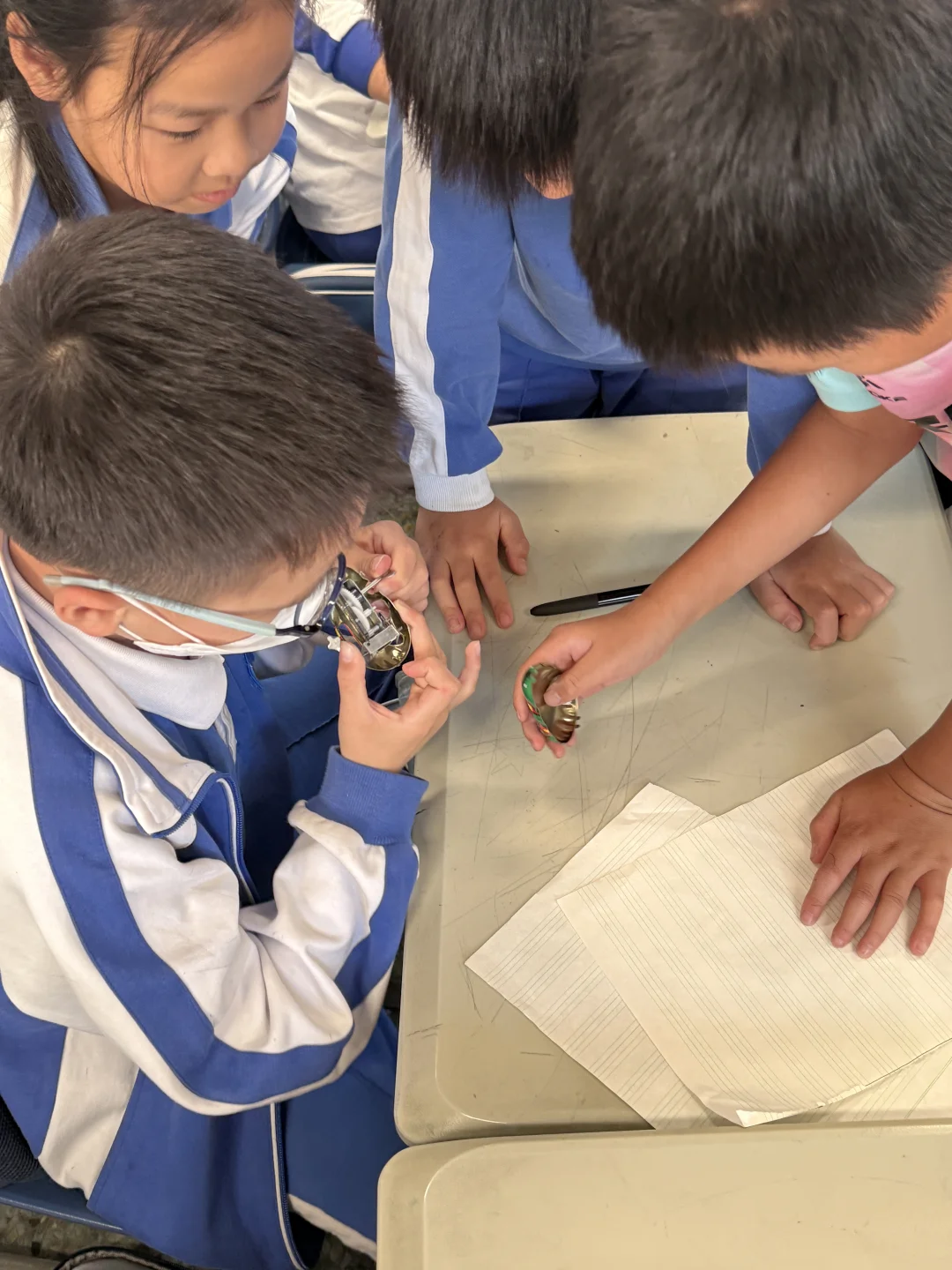 研讨这部分很有意思,学生会提到“齿轮⚙️”、“轴”、“带动”等关键词,稍加修正连“轮带动轴转动”“轴带动轮转动”都被提出来了🤩