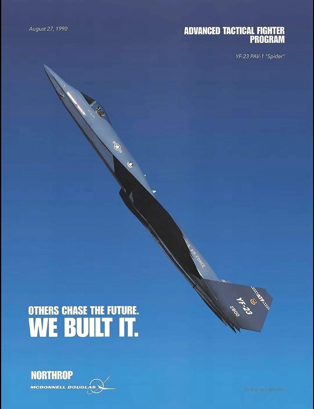 YF-23! 与F-22竞争中失败的产品 它的隐身性能可能比SU-57的效果还好 YF-23的悲剧在于过度追求单项性能极限,而忽视工程可实现性与战场适应性。然其将隐身与速度推向时代巅峰的尝试,持续影响着六代机演进轨迹,成为航空史上“未完成的革命”。