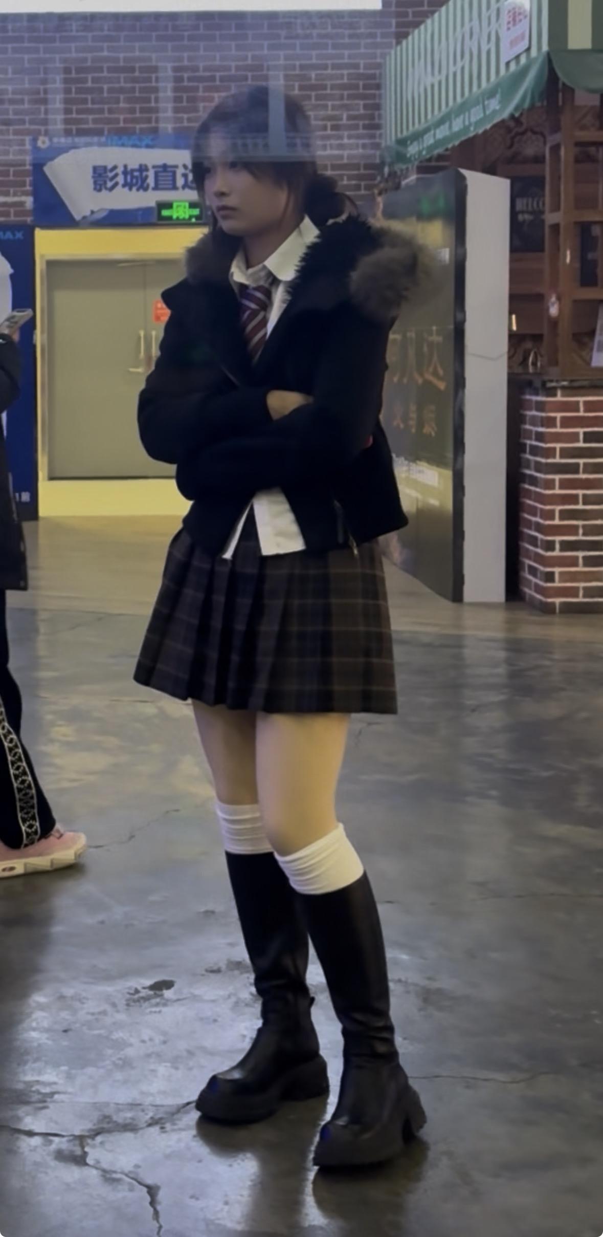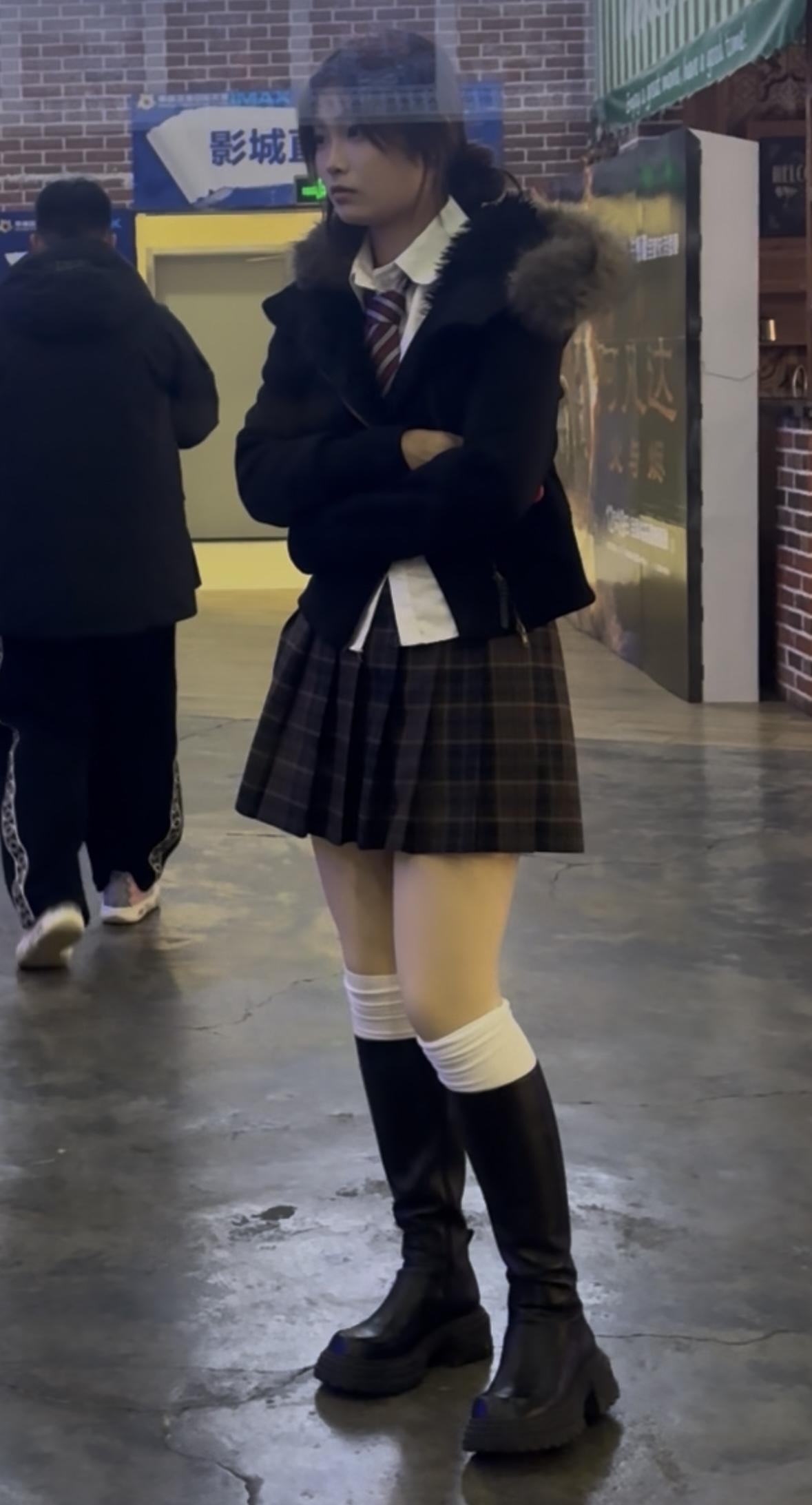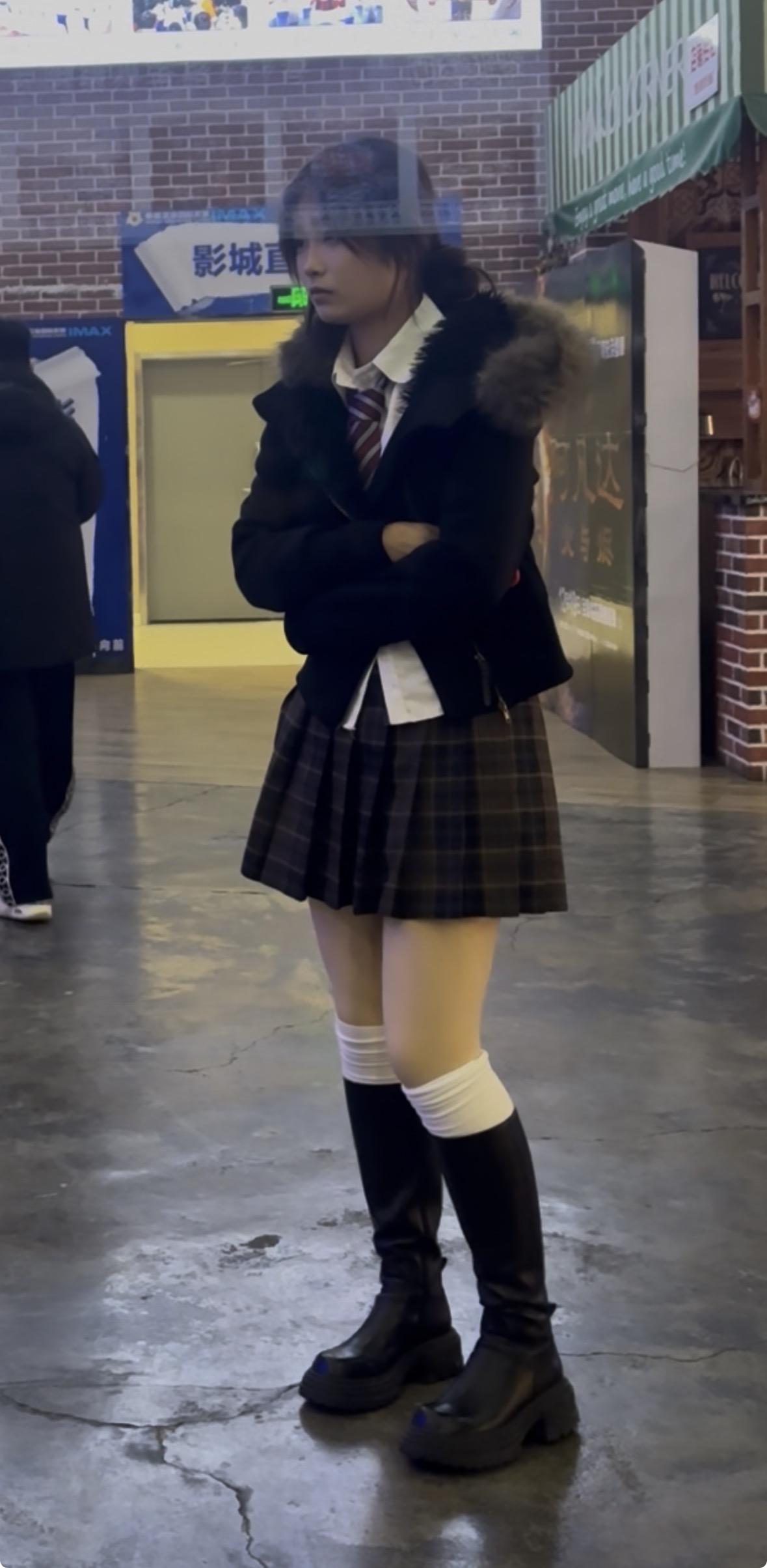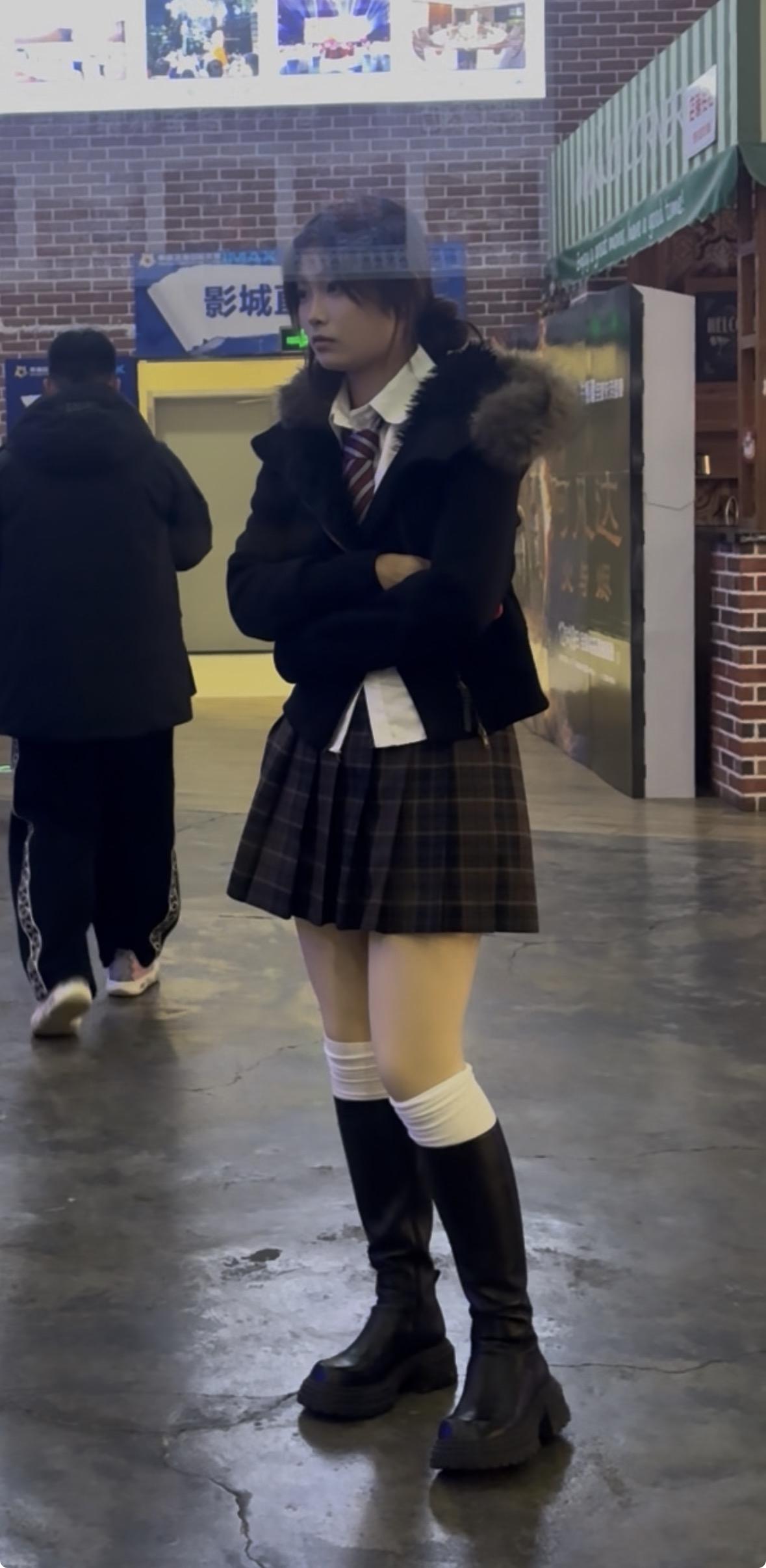 校园风穿搭指南:黑白格子裙+毛绒外套,青春减龄!🎒👟