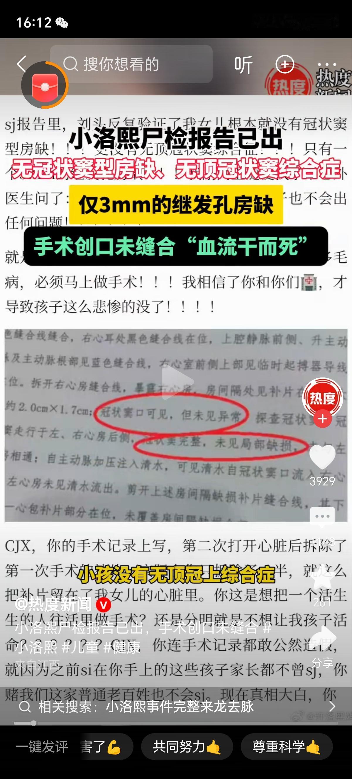 很好奇,明明没有7mm的房缺,为啥告诉家长有呢?医院的设备这么差的吗,这么明显的错误都能犯。伤口都不给缝合是几个意思呢。 就一个3mm缺损,要么自己长好,要么等孩子长大再说,这么着急做手术是为了啥呢。主刀医生水平是不是太差了,没有冠状窦性房缺非说有,没有冠状窦综合症非说有。 也不知道这个医生是哪个学校毕业的,主修专业是啥,这么大的医院咋就能让他主刀,明显医术不行。