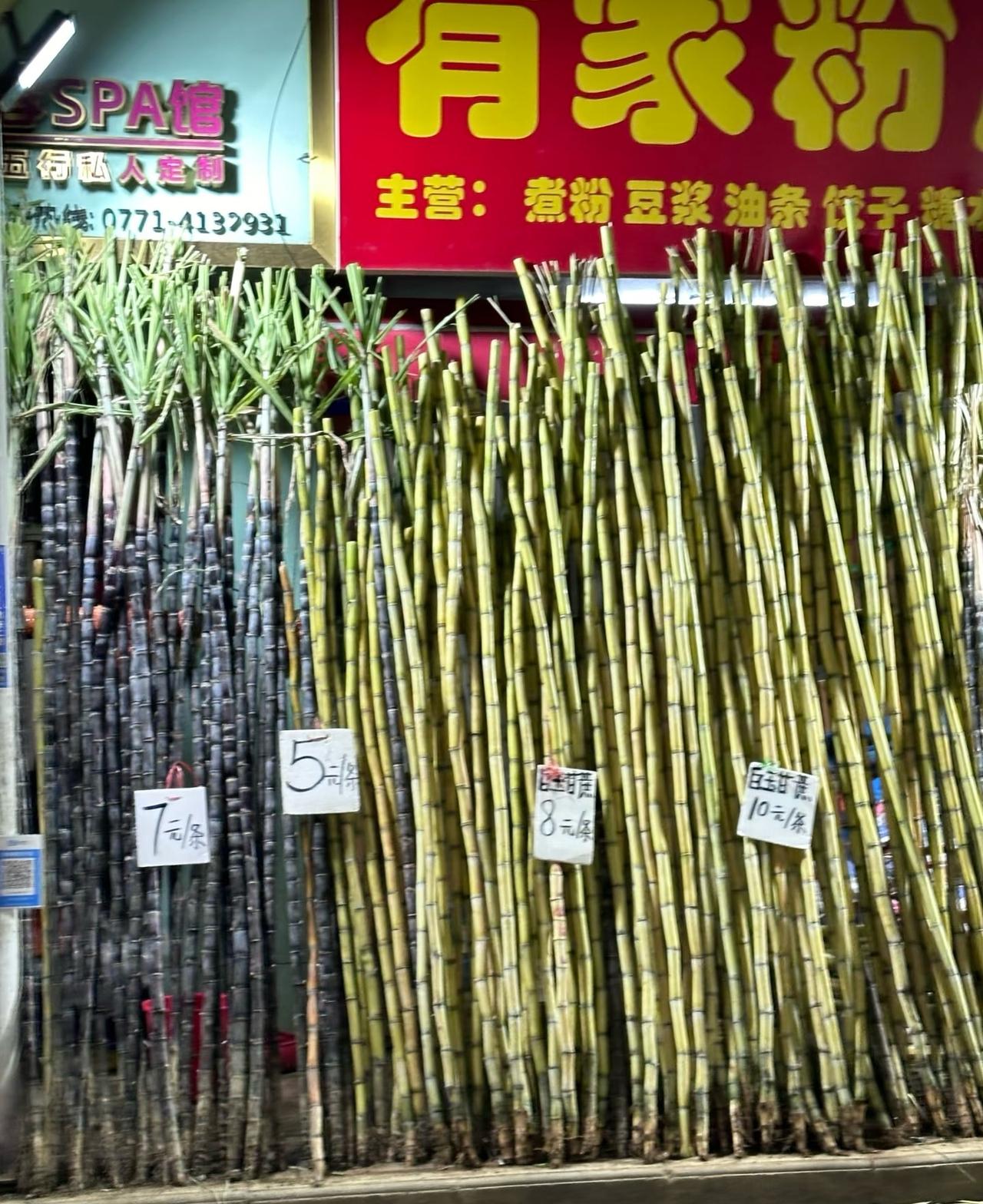 广西的甘蔗已经便宜到next level了! 路过南铁这边,这条街一排排甘蔗站得笔直 一排排巨引人注目 本广西人也觉得10块一根已经很便宜了喂! 还有5块、7块到底怎么回事!