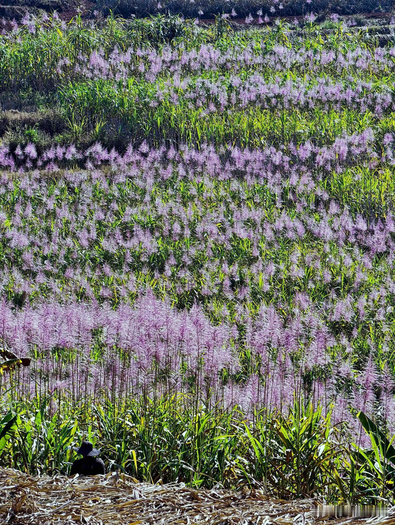 罕见!原来甘蔗会开花呀,还这么好看! 真的被山里的甘蔗花惊艳到了! 长这么大第一次见, 漫山遍野的紫色太惊艳了~ 之前一直以为甘蔗只长甜杆, 压根不知道它会开花! 当地云南老乡一指, 我还以为是某种野花, 凑近看才发现花穗细细密密的, 紫得温柔又热烈。 大自然也太神奇了吧! 原来常见的作物也有隐藏美景, 这趟乡村漫游值爆了~ 没见过的宝子真的可以去看看, 比很多网红花海还治愈, 妥妥的宝藏小众打卡地! 甘蔗