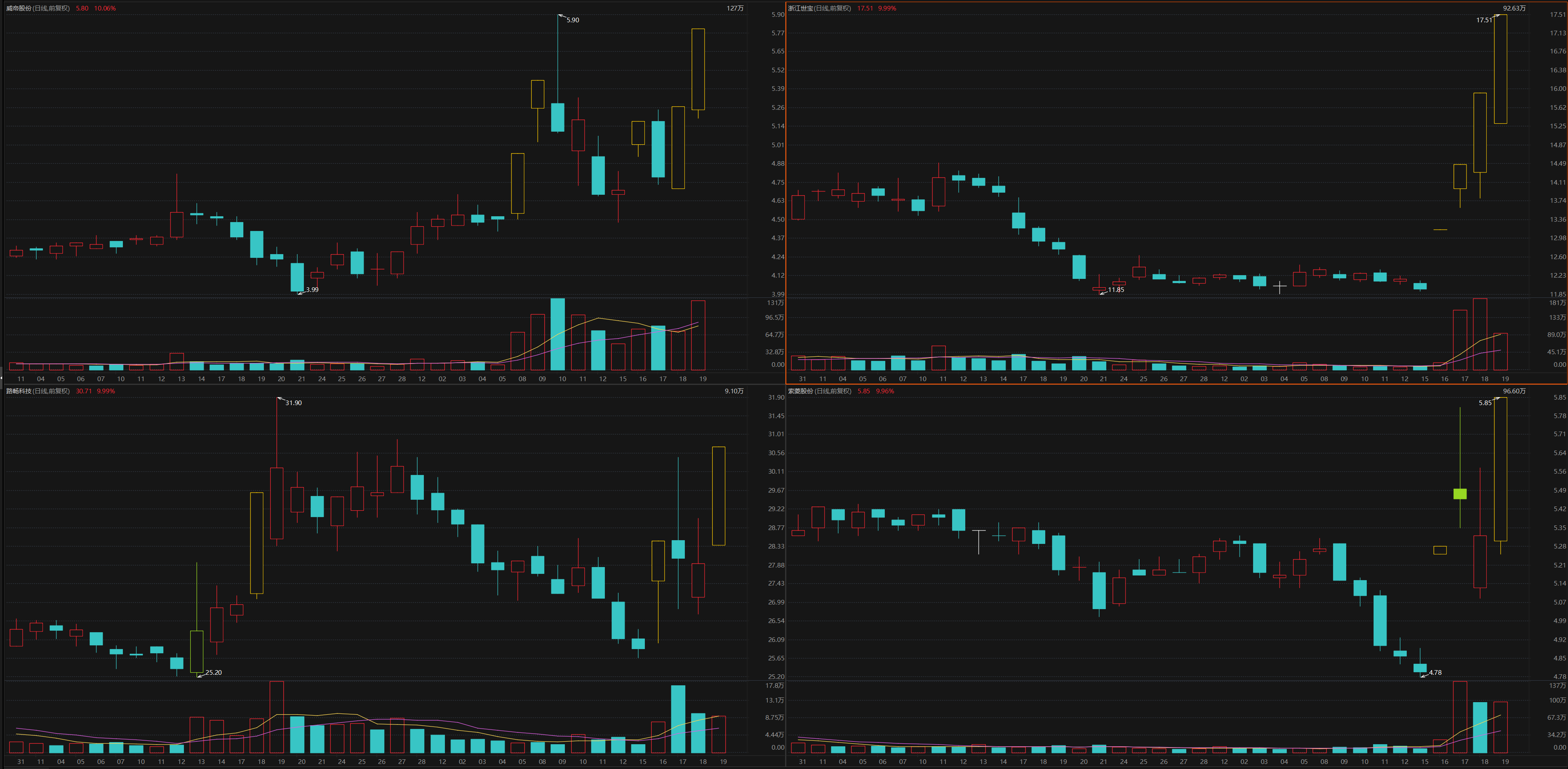 智能驾驶概念股表现活跃,截至周五收盘,已形成比较完整的客车车身电子控制产品线的威帝股份10天5板,智能转向等产品均适用于L3及以上自动驾驶的浙江世宝4连板。子公司设立智能驾驶产业基金的路畅科技、拟参股设立智能驾驶公司的索菱股份均4天2板。