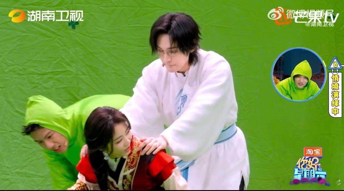 付航干的全是体力活 绿幕不 NG 环节付航化身 “工具人小绿”,又是喷雪配合汪铎演艾莎,又是推道具带谭松韵转圈,一场戏下来直接累趴,妥妥的体力担当~ 你好星期六