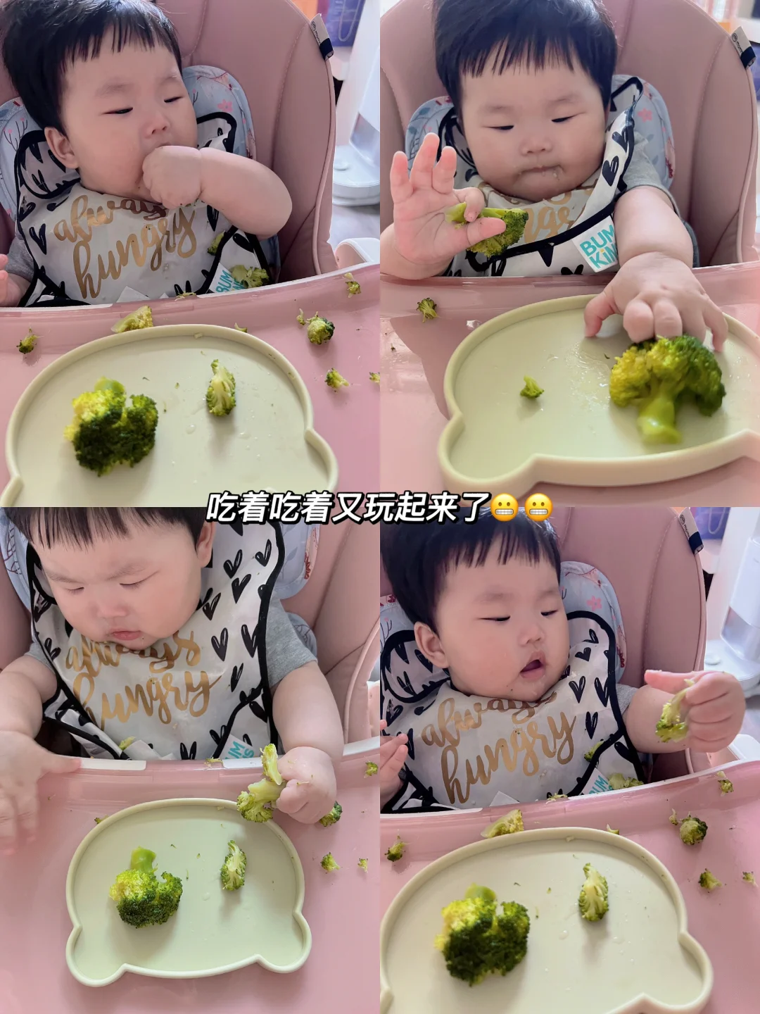 👧:7个月➕11天 🥣:粒粒面➕热炒油➕牛里脊➕香菇➕西兰花 ⏰:上午11:30 📝:10g粒粒面➕2滴核桃油➕3勺牛肉泥➕3勺香菇泥➕西兰花手指食物 🍽️:下午加餐: 吃香菇泥的第三天~顺利排敏啦[派对R][派对R][派对R] 今天准备了西兰花手指食物,柒柒每次吃手指食物都是一开始吃的很认真,后面就玩起来了😥捏的到处都是哈哈哈 🥣香菇牛肉面还剩一点点没吃完,接着喝了40ml水,奶是等柒柒午觉睡醒喝的,隔了3个小时,奶量190。 下午依旧没有准备水果吃嘿嘿我又给忘了🫣…