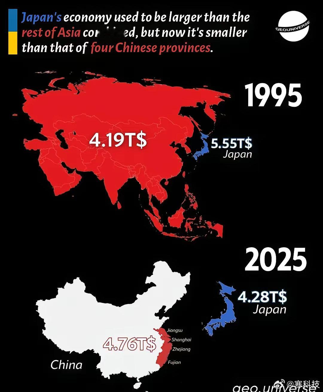日本的经济规模曾经超过亚洲其他国家经济总和,但现在却比不上中国四个省的经济规模!