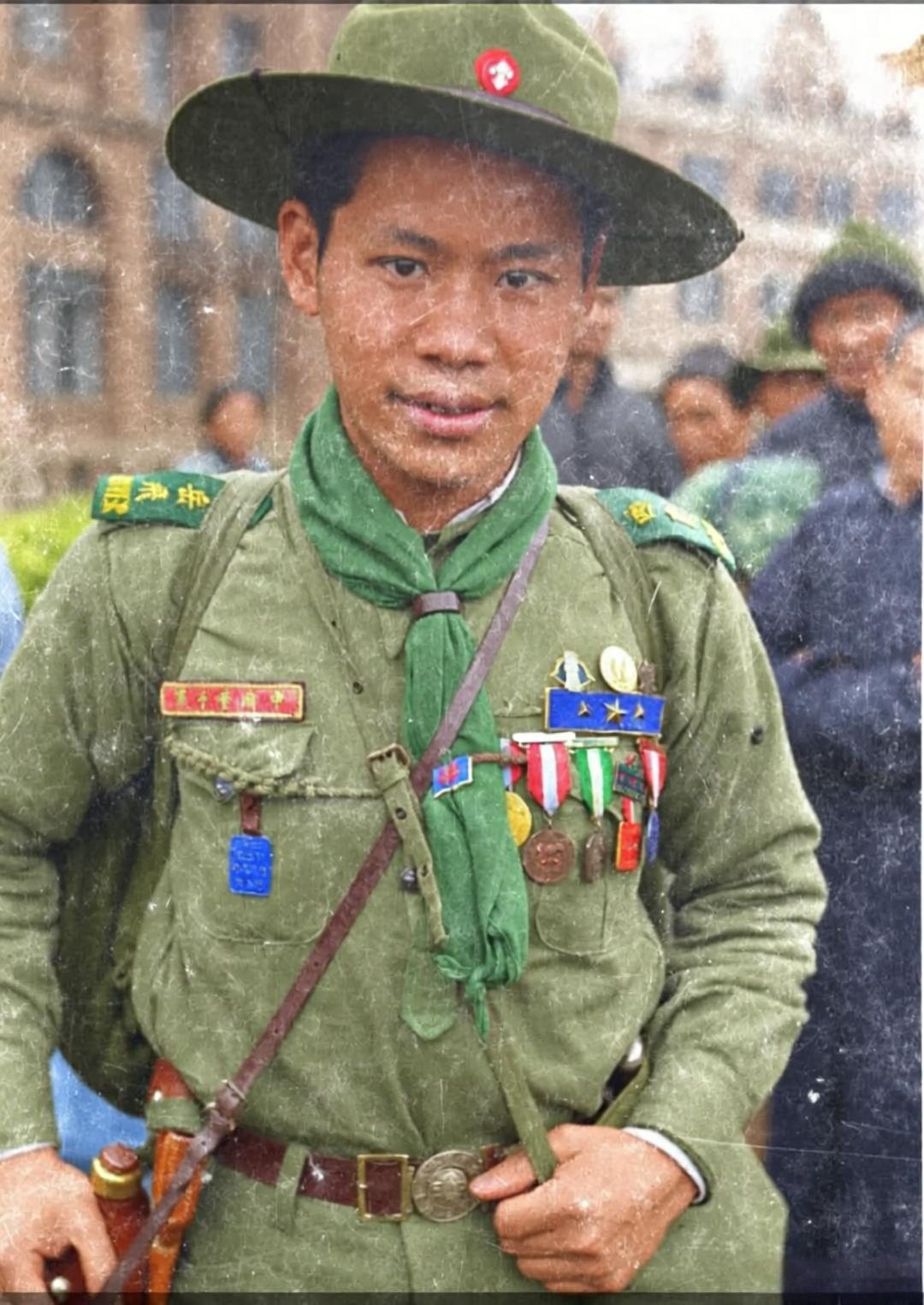 这是20世纪30年代上海童子军的肖像照,少年身着制式童子军制服,头戴宽檐帽,肩章、胸前的“中国童子军”标识清晰可见,胸前还别着多枚奖章,背着行囊、束着腰带,透着纪律性与朝气。 20世纪30年代是中国童子军发展的活跃期,上海作为当时的城市中心,童子军组织(多附属于学校)既开展军事训练、急救等技能学习,也参与社会服务(如抗战初期的后勤支援)。