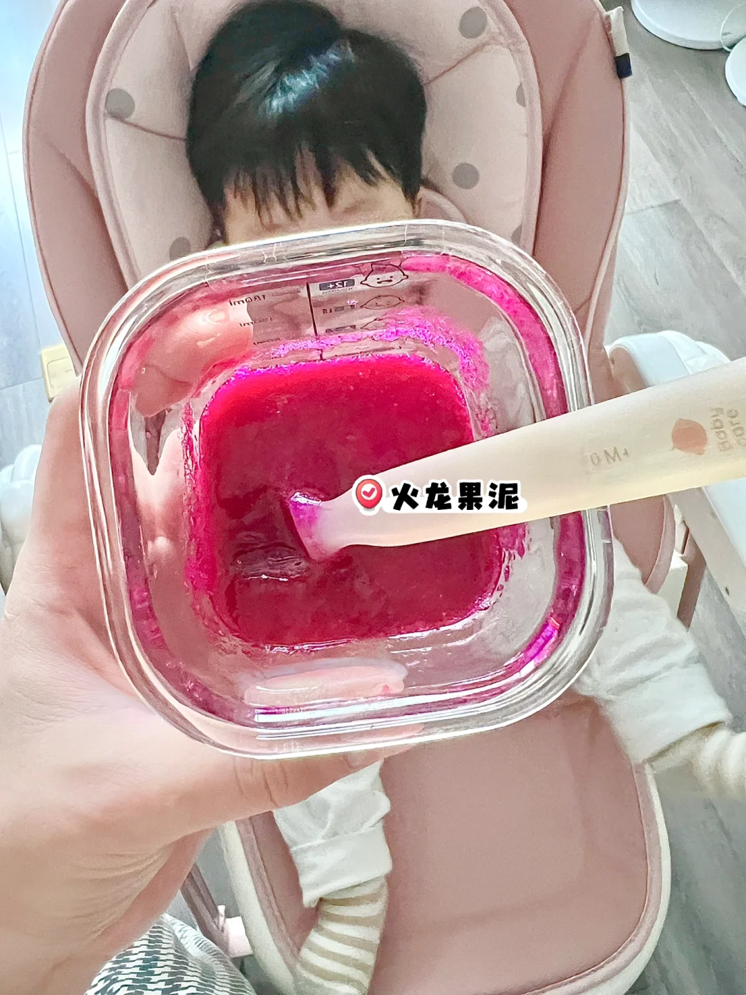 今天7.5g米粉全吃光光[赞R][赞R][赞R]饭后喝了40ml水,吃的比较多吧隔了一个半小时才吵着要喝奶哈哈[偷笑R]。下午加餐火龙果泥,小月龄宝宝吃的话还是过筛去一下籽吧,这样好消化一些。
