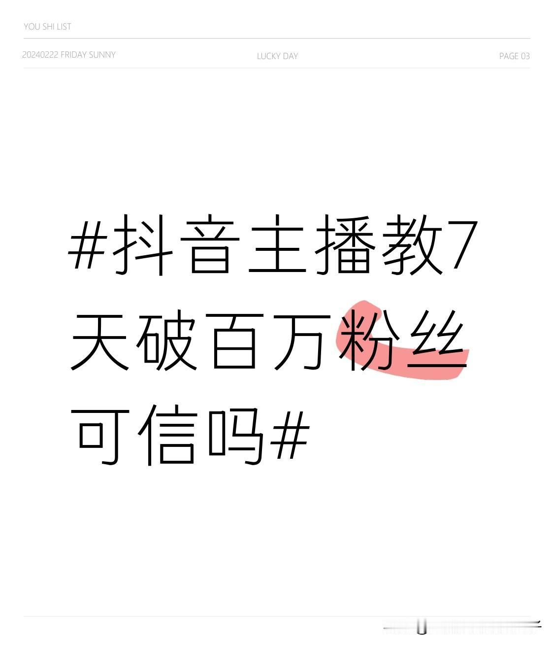 抖音主播说7天破百万粉丝,可信度基本为零。现在网上很多抖音变现课,都打着“7天起号变现”“新手小白7天涨粉10万”的旗号,先以“0元免费课”“1元体验课”吸引你入群,再用虚假的“学员收益截图”忽悠你,最后推销几千元的进阶课。安徽的陈先生就花2880元报了进阶课,结果啥也没赚到。 虽说有“蛋神”8天揽356万粉的例子,但这是极其个别的,是内容稀缺带来的爆火。普通人想在7天破百万粉,简直比登天还难。所以别被那些主播忽悠,交了智商税。