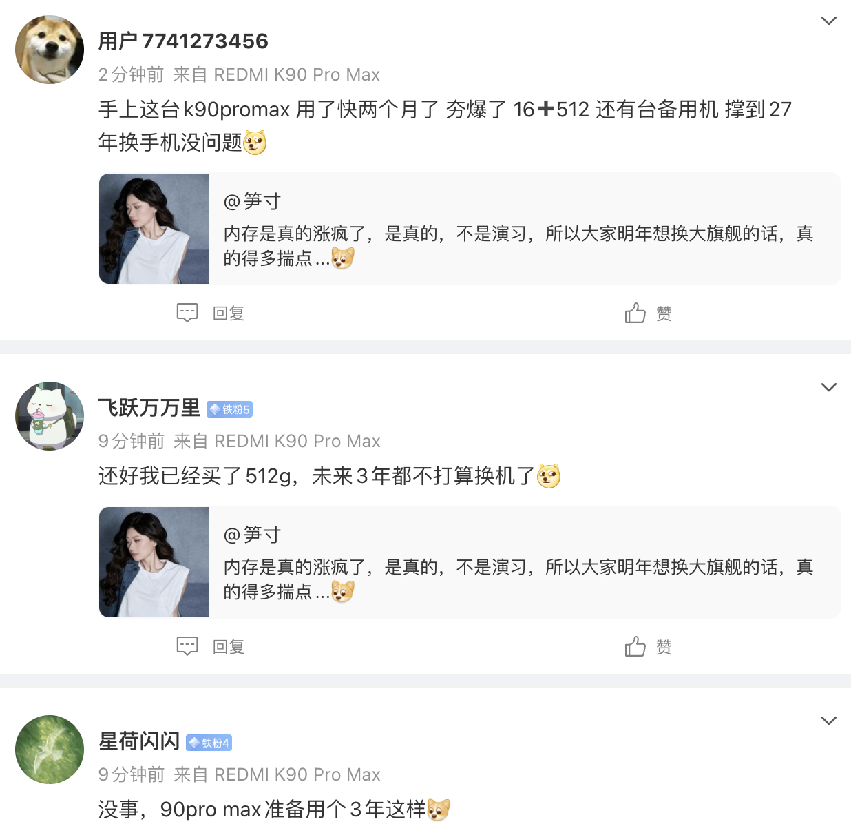 收到连续三位K90ProMax挚友给出内存涨价后的选择...