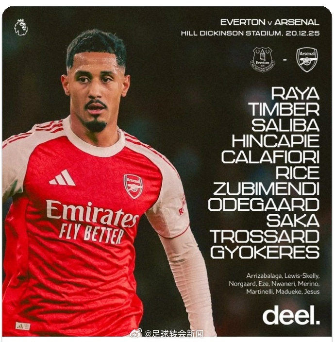阿森纳阿森纳首发:拉亚、廷贝尔、萨利巴、因卡皮耶、卡拉菲奥里、赖斯、祖比门迪、厄德高、萨卡、特罗萨德、哲凯赖什
