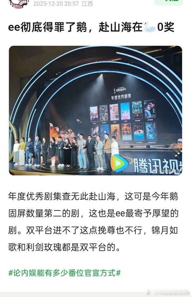 2025腾讯视频金鹅荣誉希望其他平台也学鹅这么严厉,这样长剧市场感到压力才会进步。