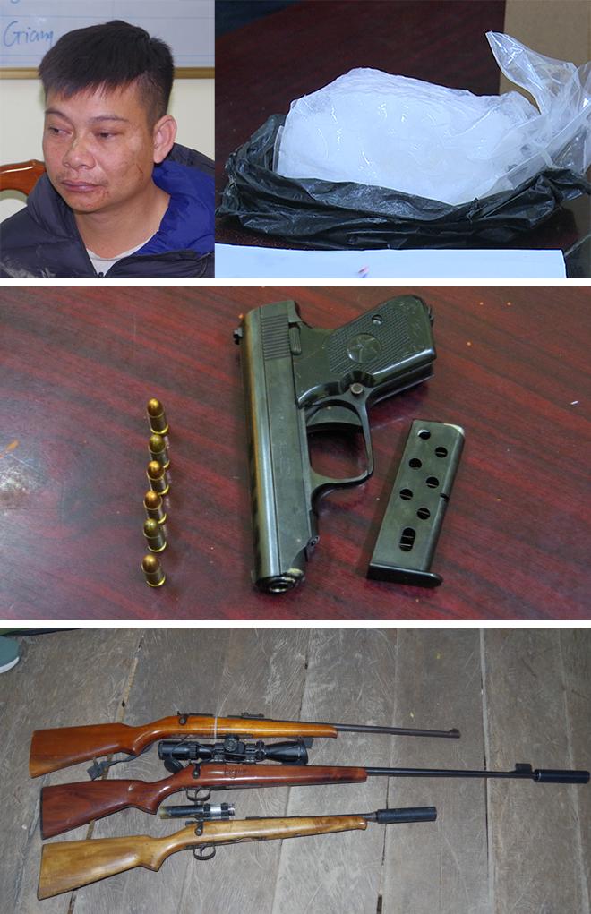 越南毒贩家中发现77式手枪 越南太原省警方当场抓获,他携带近1公斤合成毒品以及一把77手枪和6颗子弹,其中1颗子弹已上膛 在同希县广山公社罗江村1B公里12号国道上,太原省警察局毒品犯罪调查警察局发现并抓获了农文成,1978年出生,居住在同希县新龙公社朗莫伊村,非法运输998.82克合成毒品。药物(冰)和 1 支枪。 77手枪有6发子弹,其中1发已上膛。 警方搜查位于公社Lang Moi村的私人住宅,发现并没收了79.94克合成毒品(氯胺酮形式); 3支气猎枪; 19颗各类子弹及一些相关证据。