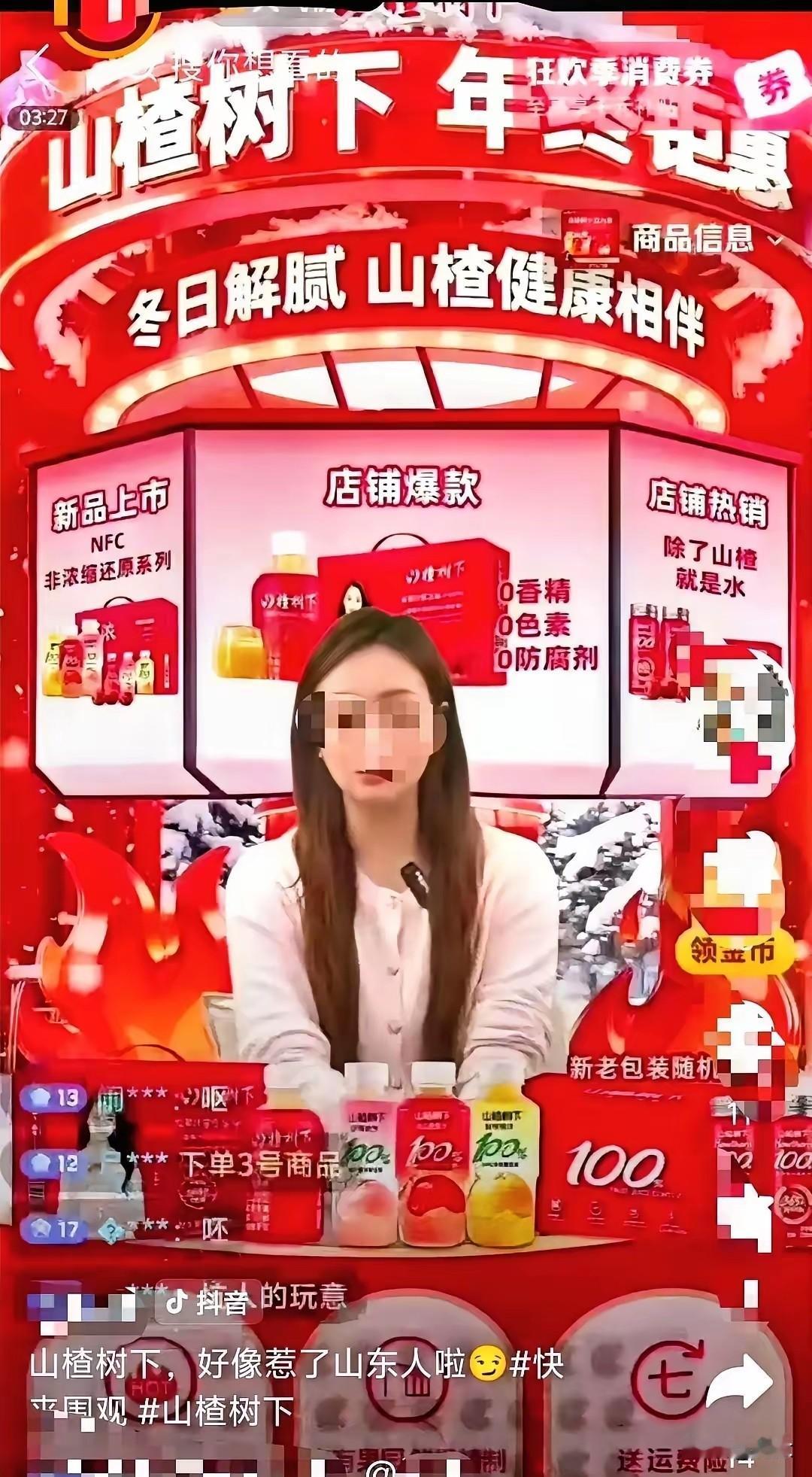 一句“买不起别来喷”,直接把“山楂树下”给喷没了。 真是活久见,在直播间里这么硬气的带货主播,除了那个卖眉笔的,这还是头一个。 人家山东网友说句大实话“咱这山楂才两块一斤”,怎么就戳着主播的肺管子了? 要知道,全国六成的山楂都产自山东。 你拿着20多块一杯的饮料,跑去原材料大省装高端,被质疑了还急着撇清关系说“跟山东没关系”。 这不是端起碗吃饭,放下碗骂娘吗? 这哪是卖货啊,纯粹是来结仇的。 现在火烧眉毛了,又是那一套熟悉的公关:先喊误会,再甩锅外包。 有些品牌傲慢惯了,总觉得互联网没有记忆,只要营销做得好,韭菜割了一茬还有一茬。 可惜这次,是真的踢到了钢板上。 想赚老百姓的钱,至少得学会先把腰弯下来。