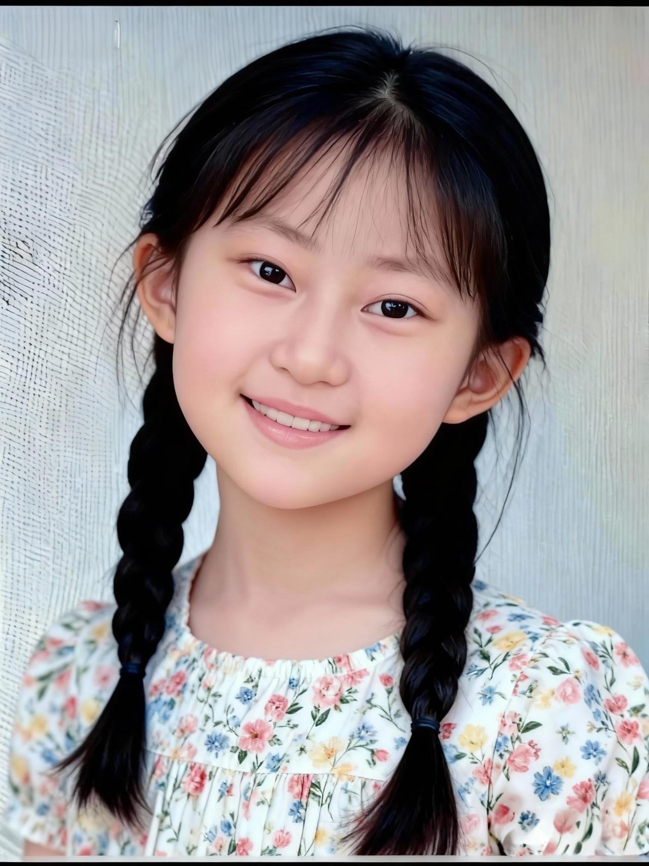 甜美笑容,双马尾辫,花裙子,萌化你的心!🌸😊
